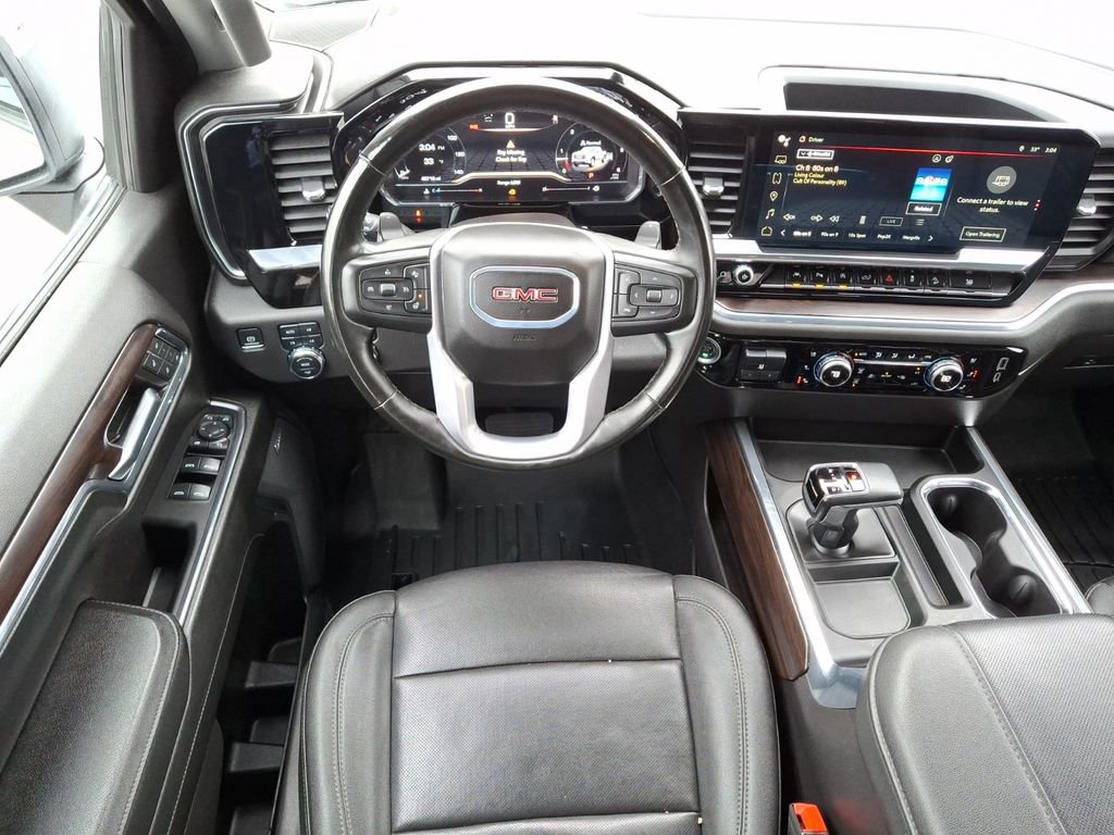 2024 GMC Sierra 1500 SLT Summit White 4WD 10-Speed Automatic EcoTec3 5.3L V8. GMC Certified Pre-Owned Certified, 10-Speed Automatic, 4WD, Jet Black Leather, 10-Way Power Driver Seat Adjuster w/Lumbar, 10-Way Power Passenger Seat Adjuster w/Lumbar, 120-Volt Bed Mounted Power Outlet, 120-Volt Interior Power Outlet, 170 Amp Alternator, 2 Charge/Data USB Ports, 2 Type-C Charge-Only Rear USB Ports, 20 Polished Aluminum Wheels, 3.23 Rear Axle Ratio, 4-Wheel Disc Brakes, 6 Speakers, Adaptive Cruise Control, Air Conditioning, Alloy wheels, AM/FM radio: SiriusXM with 360L, Apple CarPlay/Android Auto, Auto High-beam Headlights, Auto-dimming door mirrors, Auto-dimming Rear-View mirror, Auto-Locking Rear Differential, Automatic Emergency Braking, Automatic temperature control, Auxiliary External Transmission Oil Cooler, Brake assist, Buckle to Drive, Chrome Header & Chrome Grille Insert Bars, Chrome Wheel To Wheel Assist Steps, Color-Keyed Carpeting Floor Covering, Compass, Deep-Tinted Glass, Delay-off headlights, Driver Memory, Driver vanity mirror, Dual Exhaust System, Dual front impact airbags, Dual front side impact airbags, Electric Rear-Window Defogger, Electronic Precision Shift, Electronic Stability Control, Floor-Mounted Center Console, Following Distance Indicator, Forward Collision Alert, Front anti-roll bar, Front Bucket Seats, Front Center Armrest w/Storage, Front dual zone A/C, Front fog lights, Front Frame-Mounted Black Recovery Hooks, Front Pedestrian Braking, Front Rain-Sensing Wipers, Front reading lights, Front wheel independent suspension, Fully automatic headlights, GMC Connected Access Capable, HD Rear Vision Camera, HD Surround Vision, Heated door mirrors, Heated Driver & Front Outboard Passenger Seating, Heated front seats, Heated steering wheel, Heavy-Duty Air Filter, High Capacity Suspension Package, Hill Descent Control, Hitch Guidance, Hitch View, Illuminated entry, In-Vehicle Trailering System App, Integrated Trailer Brake Controller, IntelliBeam Automatic High Beam On/Off, Keyless Open & Start, Lane Keep Assist w/Lane Departure Warning, LED Cargo Area Lighting, Low tire pressure warning.