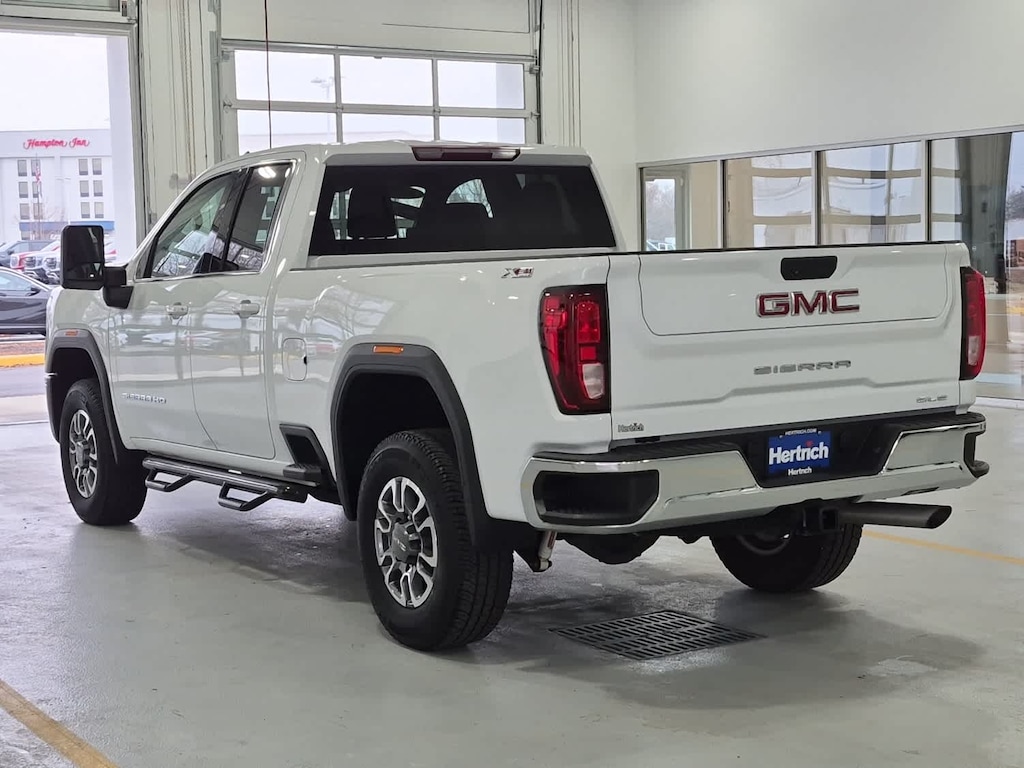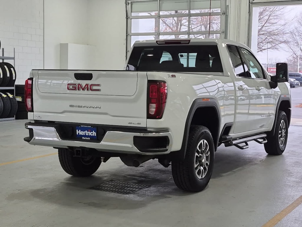 Serviced here, Non-Smoker vehicle, Originally bought here, Auto Check One Owner! Hertrich Certified Pre-Owned, Excellent Condition. NAV, Tow Hitch, Onboard Communications System, Satellite Radio, Running Boards, Back-Up Camera, 4x4, Alloy Wheels, Heated Package, X31 Off-Road and Protection Package, Engine, 6.6L V8. Service completed on this GMC Sierra 2500HD included: Complete Multi-Point Inspection, Oil & Filter Change by a Factory Trained Technician, Battery Voltage Test, Tires Inspected, Brake Inspection, Emissions System Check, Professional Detailed Inside and Out, Function Test all Lights, Check the Complete Exhaust System, Cooling System Inspection, Transmission Fluid Inspection, Differential Fluid Inspection, Function Test all Options & Accessories. GMC SLE with Summit White exterior and Dark Walnut/Slate interior features a 8 Cylinder Engine with 401 HP at 5200 RPM. X31 Off-Road and Protection Package includes Off-Road suspension with Twin-tube Rancho shocks, Hill Descent Control and skid plates (transfer case and oil pan), spray-on bedliner, all-weather floor liners, X31 badge includes 18" machined aluminum wheel with Dark Grey metallic accents and 18" all-terrain, blackwall tires. SLE Convenience Package includes 120-volt power outlet, 120-volt bed-mounted power outlet, dual climate control, 10-way power driver seat including power lumbar, manual tilt/telescoping steering column, LED fog lights, roof marker lamps and 2 charge-only USB ports. Remote Start Package includes Remote Start, content theft alarm and rear-window defogger. Heated Package includes heated driver and passenger seats, heated steering wheel. 13.4" diagonal GMC Premium Infotainment System with Google built-in includes color touch-screen, multi-touch display, AM/FM stereo, Bluetooth streaming audio for music and most phones; featuring wireless Android Auto and Apple CarPlay capability for compatible phones.