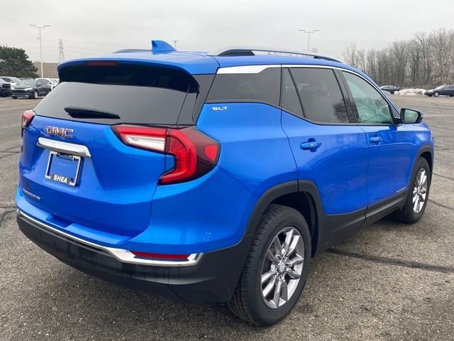 With its sleek Riptide Metallic Blue exterior and a well-appointed interior, this vehicle offers a premium driving experience that is sure to impress. The 1.5L DOHC engine paired with a 9-speed automatic transmission and front-wheel drive delivers an exceptional balance of power and efficiency, with an EPA-estimated 24 city/29 highway MPG. Beyond its impressive performance, this Terrain SLT is loaded with an array of advanced features that cater to your every need. The Preferred Equipment Group 4SA includes a host of desirable amenities, such as a power liftgate, heated front seats, and a premium audio system with SiriusXM. The wireless Apple CarPlay and Android Auto integration seamlessly connect your smartphone, allowing you to access your favorite apps, music, and navigation with ease. Comfort and convenience are at the forefront of this Terrain SLT's design. The dual-zone automatic climate control, heated steering wheel, and 8-way power-adjustable driver's seat with memory settings ensure a personalized driving experience. The rear-view camera, blind-spot monitoring, and lane-keep assist technologies provide added peace of mind and enhance your overall driving confidence. This 2024 GMC Terrain SLT is a certified pre-owned vehicle, meaning it has undergone a rigorous inspection and reconditioning process to meet the highest standards of quality and reliability. With low mileage and a comprehensive warranty, this Terrain SLT represents an exceptional value proposition in the compact SUV market. Whether you're seeking a spacious and versatile family hauler or a stylish and well-equipped daily driver, this 2024 GMC Terrain SLT is an outstanding choice. Experience the exceptional craftsmanship, advanced technology, and impressive performance that this vehicle has to offer. Visit our showroom today and let us demonstrate why this Terrain SLT is the perfect fit for your lifestyle.