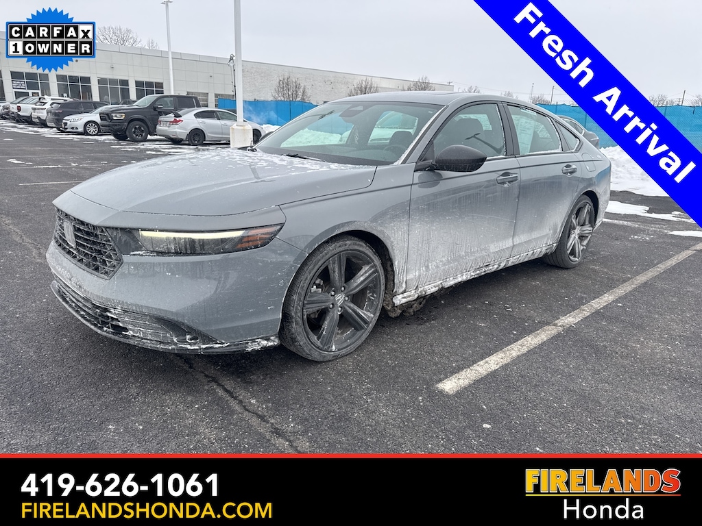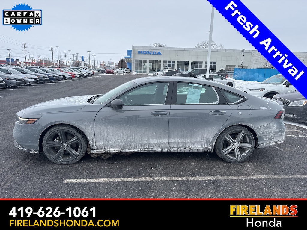 Firelands Honda is proud to offer this outstanding-looking 2024 Honda Accord Hybrid in Meteorite Gray Metallic. This Accord Hybrid has been checked by our award winning service department. Hot features include: Bluetooth Hands Free, Back Up Camera, Remote Start, Local Trade, Adaptive Cruise Control, Balance of Factory Warranty, Service Records Available, Heated Leather Seats, Locally Owned New Car Trade, Lane Departure Warning, Apple Carplay/Android Auto, Blind Spot Detection, Fog Lights, Automatic Emergency Braking, Forward Collision Warning, Rear Cross Traffic Alert, Honda Certified, Moonroof / Sunroof, Clean CARFAX, One Owner, No Accidents, Memory Seats. Certified. Firelands Honda isn't only a place for those in the market for a new Honda car. We're also the go-to spot for those already behind the wheel. Customers find our car service and maintenance center, also located in Sandusky, Ohio, both convenient and competent. It doesn't stop there-- Firelands Honda also host an array of services to personalize or enhance your Honda driving experience. Just ask our onsite auto parts and accessories department what we mean. Still not clear about why so many trust Firelands Honda for all of their Honda needs? Visit our dealership at 2301 Hayes Ave. Sandusky, Ohio and find out for yourself! You can reach us by phone at 419-626-1061 or shop 24/7 at www.firelandshonda.com.