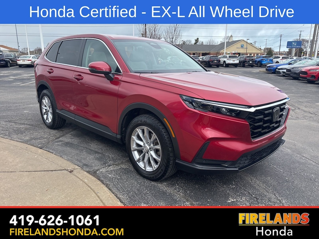 Firelands Honda is proud to offer this gorgeous-looking 2024 Honda CR-V in Radiant Red Metallic. This CR-V has been checked by our award winning service department. Hot features include: Certified. Why is Firelands Honda a Go-To Spot for Sandusky, Norwalk, Elyria and Amherst Drivers Seeking a New or Used Vehicle? It could be our varied and accommodating selection of new Honda models, including the much-loved Honda Accord, CR-V, Ridgeline, Odyssey and Civic. Perhaps it's our equally vast range of high-quality, Firelands Honda-approved used cars. It may also very well be the Honda financing offers available to customers who shop with Firelands Honda. With these auto loan and car lease options, shoppers feel at ease, worry-free, and extra satisfied with their purchase. Firelands Honda isn't only a place for those in the market for a new Honda car. We're also the go-to spot for those already behind the wheel. Customers find our car service and maintenance center, also located in Sandusky, Ohio, both convenient and competent. It doesn't stop there-- Firelands Honda also host an array of services to personalize or enhance your Honda driving experience. Just ask our onsite auto parts and accessories department what we mean. Still not clear about why so many trust Firelands Honda for all of their Honda needs? Visit our dealership at 2301 Hayes Ave. Sandusky, Ohio and find out for yourself! You can reach us by phone at 419-626-1061 or shop 24/7 at www.firelandshonda.com.