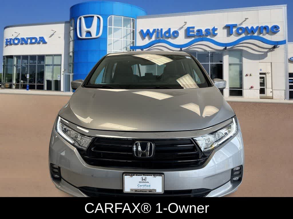 Happy New Year!! Make your New Years Resolution to Spoil yourself with a New Car!!! To Celebrate we're running $1000 over KBB Trade-in!! Stop in for your New or Used Honda, or anything in between and see why we're Dealerater Dealer of the Year! Honda Presidents Award Dealer, and Carfax Dealer of the year, come see for yourself why we're rated one of Madison's Best and rated a 4.8/5 on 5000 reviews on Cars.com!!! Also have corporate discounts available, see a sales associate for details. If no price vehicle is still going through our safety process, please inquire if interested. Wilde East Towne Honda is your destination dealership in Madison!! This Honda Odyssey has many features, including; Reward yourself today!! Call now 608.402.8200!! We welcome all trade-ins!! See store for details on Lifetime oil plan. Must present at time of sale. Not all vehicles qualify, $998 Wilde Care Including 3 oil changes on all new & pre owned vehicles. KBB Fair Trade sale, vehicle must be 2012 or newer and be in running condition. Besides many of the features just listed, this Honda Odyssey also may have many of the following; HondaTrue Certified Certified, Power Liftgate, Power moonroof, 18 Machine-Finished Alloy Wheels, 3rd row seats: split-bench, 4-Wheel Disc Brakes, 7 Speakers, A/V remote: CabinControl, ABS brakes, Adaptive Cruise Control: Adaptive Cruise Control (ACC) with Low-Speed Follow, Air Conditioning, Alloy wheels, AM/FM radio: SiriusXM, Anti-whiplash front head restraints, Apple CarPlay/Android Auto, Auto High-beam Headlights, Auto-dimming Rear-View mirror, Automatic temperature control, Blind Spot Information (BSI) System warning, Brake assist, Bumpers: body-color, Delay-off headlights, Driver door bin, Driver vanity mirror, Drivers Seat Mounted Armrest, Dual front impact airbags, Dual front side impact airbags, Electronic Stability Control, Exterior Parking Camera Rear, Four wheel independent suspension, Front anti-roll bar, Front Bucket Seats, Front dual zone A/C, Front fog lights, Front reading lights, Fully automatic headlights, Garage door transmitter: HomeLink, Heated door mirrors, Heated Front Bucket Seats, Heated front seats, Illuminated entry, Knee airbag, Lane departure: Lane Keeping Assist System (LKAS) active, Leather Seat Trim, Leather steering wheel, Low tire pressure warning, Memory seat, Occupant sensing airbag, Outside temperature display, Overhead airbag, Overhead console, Panic alarm, Passenger door bin, Passenger seat mounted armrest, Passenger vanity mirror, Power door mirrors, Power driver seat, Power passenger seat, Power steering, Power windows, Radio data system, Radio: 160-Watt AM/FM/HD/SiriusXM Audio System, Rear air conditioning, Rear anti-roll bar, Rear reading lights, Rear seat center armrest, Rear window defroster, Rear window wiper, Reclining 3rd row seat, Remote keyless entry, Security system, Speed control, Speed-sensing steering, Speed-Sensitive Wipers, Split folding rear seat, Spoiler, Steering wheel mounted audio controls, Tachometer, Telescoping steering wheel, Tilt steering wheel, Traction control.