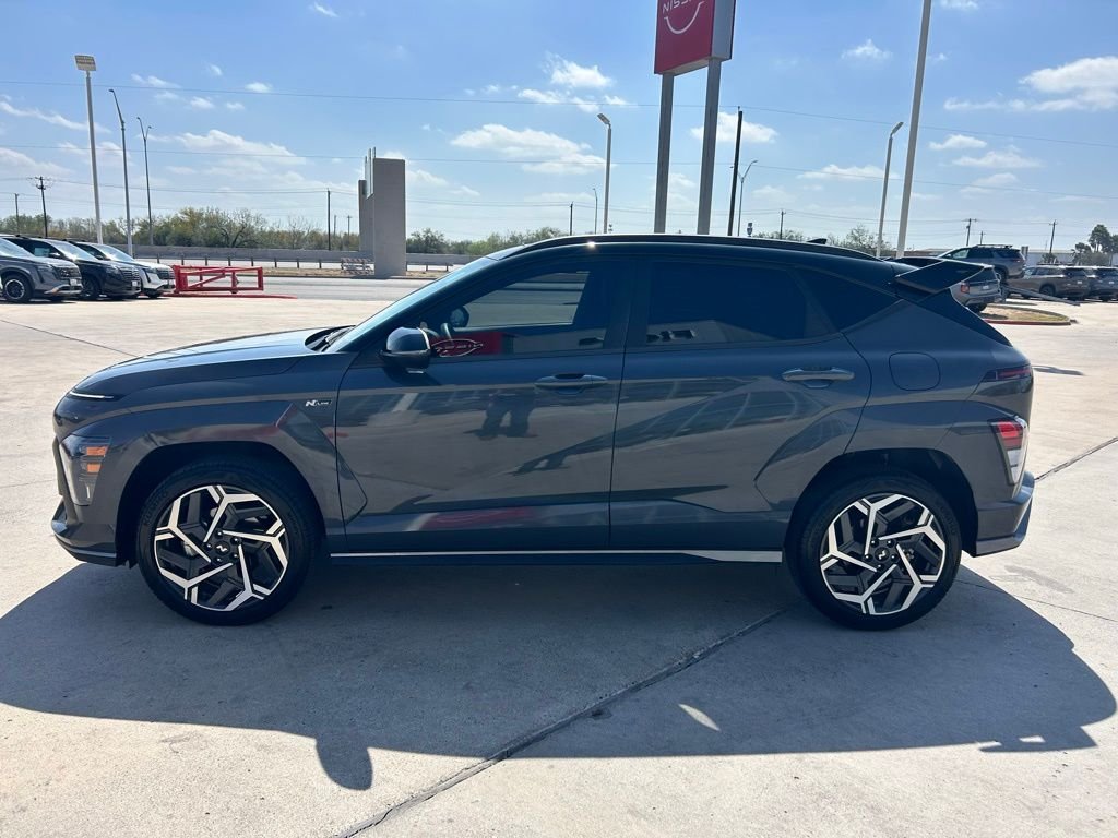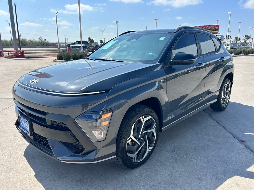 Sporty Style Meets Everyday Versatility. Turn heads wherever you go in the bold 2024 Hyundai Kona N Line finished in stunning Ecotronic Gray Pearl with a Black Roof. This sporty crossover delivers sharp design, confident AWD performance, and premium comfort all in one sleek package. Powered by a responsive I4 engine paired with an 8-Speed Automatic Transmission and AWD, the Kona N Line is built for drivers who want performance with everyday practicality. N Line Sport Styling & Performance includes 19" Metallic Alloy Wheels, heated front sport bucket seats, N Line Alcantara sport combination seating, power moonroof, premium audio with AM/FM, HD Radio, and SiriusXM, rear exterior parking camera, electronic stability control, and more. Compact, sporty, and packed with features this Kona is ready to make every drive more exciting.