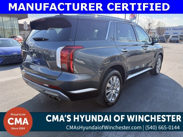 Certified. This 2024 Steel Graphite Hyundai Palisade SEL AWD is well equipped and includes these features and benefits: One owner, remainder of factory warranty, Bluetooth/hands free, navigation/GPS, rear backup camera, navigation system, Option Group 01. Hyundai Certified Used Vehicles Details: Includes 10-year/Unlimited Mileage Roadside Assistance with Rental Car and Trip Interruption Reimbursement; Please See Dealers for Specific Vehicle Eligibility Requirements. 10-Year/100,000 Mile Hybrid/EV Battery Warranty. 3-Months SiriusXM Trial Subscription. Complimentary 1 Year (Connected Care & Remote Pkgs). Warranty Deductible: $50. Powertrain Limited Warranty: 120 Month/100,000 Mile (whichever comes first) from original in-service date. Limited Warranty: 60 Month/60,000 Mile (whichever comes first) from original in-service date. Roadside Assistance. 173+ Point Inspection. Vehicle History.