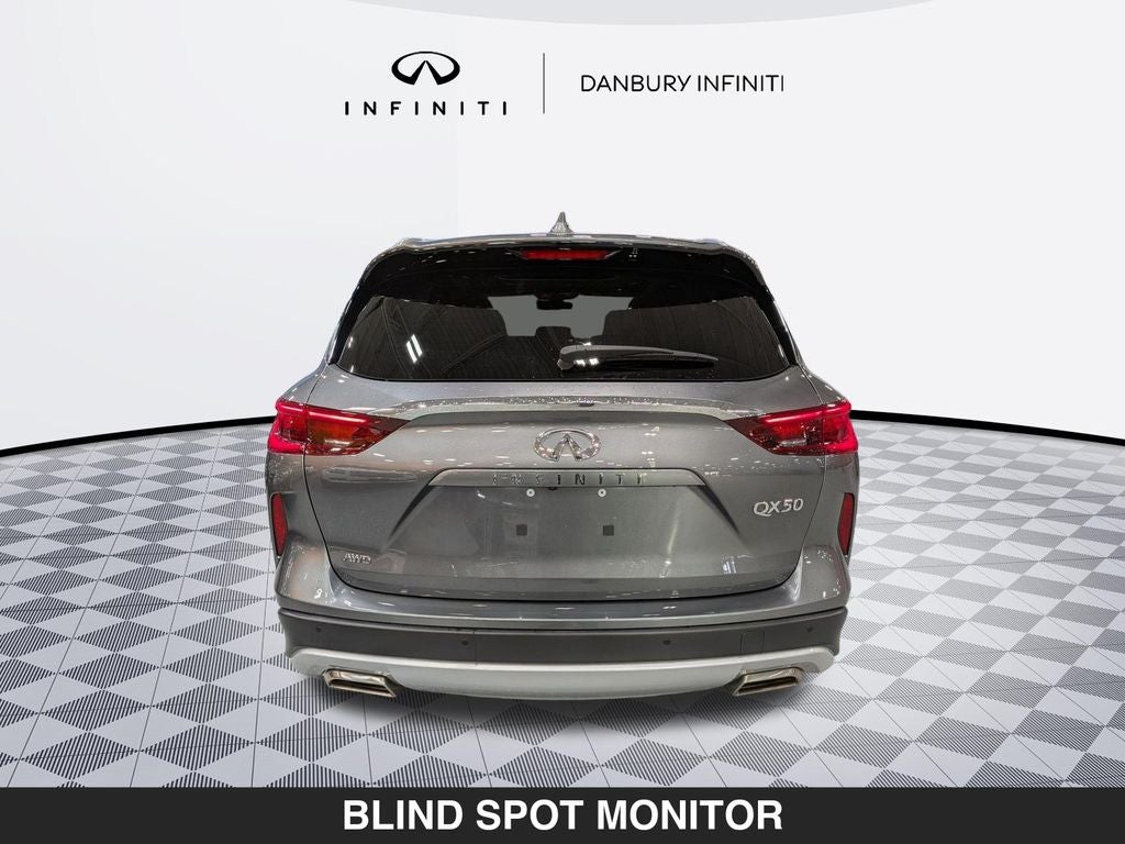 Recent Arrival! Welcome to our huge indoor showroom. You can view our 400 plus vehicle inventory indoors without dealing with the weather. Located at 13 Sugar Hollow Road Danbury Ct. 06810. Right near the Danbury Fair Mall. Previously Bruce Bennett Nissan Infinity Of Danbury. Clean CARFAX. CARFAX One-Owner. 2024 INFINITI QX50 LUXE 4D Sport Utility Graphite Shadow LUXE I4 CVT AWD Certified. INFINITI Certified Pre-Owned Details: Roadside Assistance, Vehicle History, Transferable Warranty, 1-Year Prepaid Service Visit Included, 6 Year/75,000 Mile Warranty for Vehicles With Less Than 15,000 Miles at Time of Certification, 6 Year/Unlimited Mile Warranty for Vehicles with 15,001-60,000 Miles at Time of Certification. Limited Warranty: 72 Month/Unlimited Mile from original in-service date. 167 Point Inspection. Warranty Deductible: $0. Bruce Bennett Nissan INFINITI of Danbury is proud to present you with another True Market Priced Pre-Owned Vehicle. Transparent Pricing Of $27590 !! This 2024 INFINITI QX50 LUXE INFINITI Certified Pre-Owned is loaded with the following Factory Options.