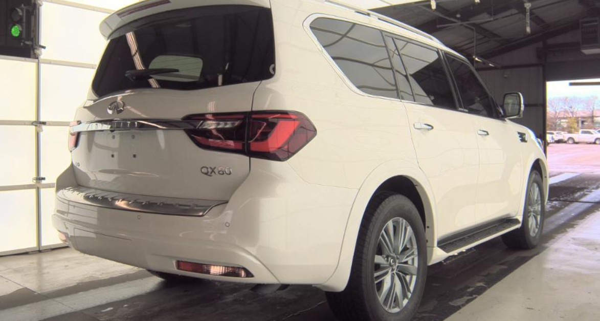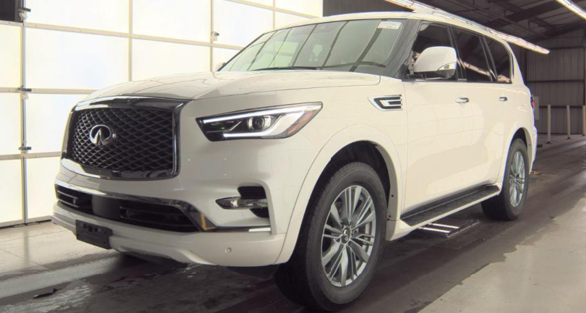 Certified. Moonstone White 2024 INFINITI QX80 LUXE 4WD 7-Speed Automatic 5.6L V8 INFINITI Certified Pre-Owned Certified, 13 Speakers, 2.937 Axle Ratio, 20" Aluminum Alloy Wheels, 3rd row seats: bench, 4-Wheel Disc Brakes, ABS brakes, Air Conditioning, Alloy wheels, AM/FM radio: SiriusXM, Anti-whiplash front head restraints, Apple CarPlay/Android Auto, Auto High-beam Headlights, Auto tilt-away steering wheel, Auto-dimming door mirrors, Auto-dimming Rear-View mirror, Auto-leveling suspension, Automatic temperature control, Brake assist, Bumpers: body-color, Cargo Package, Compass, Console Net, Delay-off headlights, Driver door bin, Driver vanity mirror, Dual front impact airbags, Dual front side impact airbags, Electronic Stability Control, Emergency communication system: INFINITI InTouch Navigation. First the INFINITI. First the INFINITI.