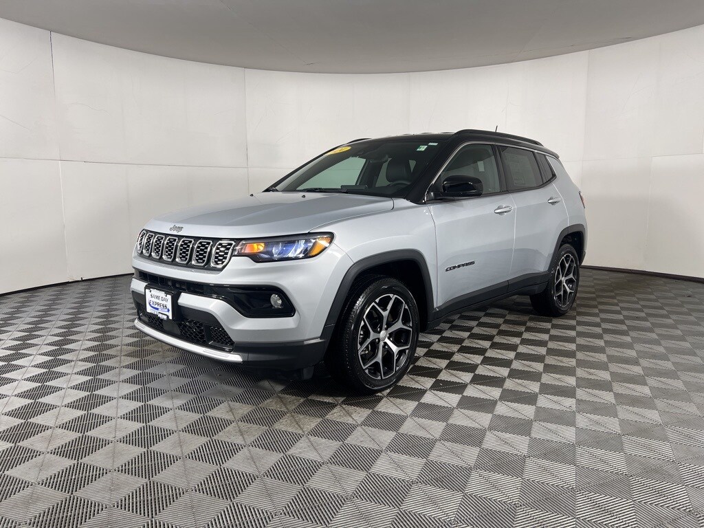 2024 Jeep Compass Limited Silver Zynith Metallic Clearcoat CARFAX One-Owner. Clean CARFAX. 4-Wheel Disc Brakes, ABS brakes, Dual front impact airbags, Dual front side impact airbags, Electronic Stability Control, Four wheel independent suspension, Front Bucket Seats, Heated front seats, Heated steering wheel, Knee airbag, Occupant sensing airbag, Overhead airbag, ParkView Rear Back-Up Camera, Power driver seat, Quick Order Package 29G Limited, Remote keyless entry, Split folding rear seat, Steering wheel mounted audio controls, Tachometer, Trip computer. 24/32 City/Highway MPG Coming Soon! This vehicle has recently been acquired and we are currently processing the paperwork, servicing the vehicle, and taking more photos. It will be available for sale and delivery shortly. See a store manager for specific details on the current status. IMPORTANT RECALL INFORMATION. Some vehicles may be subject to unrepaired safety recalls. Go to www.safercar.gov to learn whether an individual vehicle is subject to an open recall.