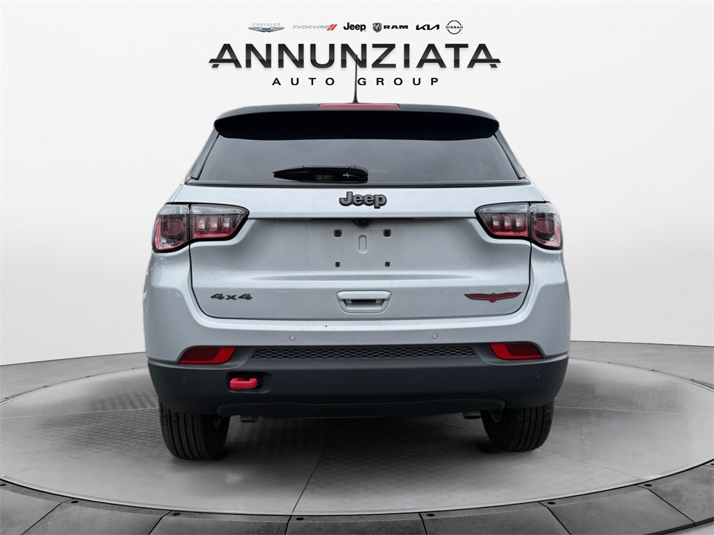 Certified. 4WD. Silver Zynith Metallic Clearcoat 2024 Jeep Compass Trailhawk 4WD 8-Speed Automatic 2.0L I4 DOHC. 24/32 City/Highway MPG. FCA US LLC Certified Pre-Owned Details: Vehicles Up to 75,000 Miles and/or 5 Model Years. 24-Hour Towing & Roadside Assistance, Car Rental Allowance, CARFAX Vehicle History Report and an Introductory 3-month Subscription to SiriusXM Satellite Radio & Certified Warranty Upgrades. Limited Warranty: 3 Month/3,000 Mile (whichever comes first) after new car warranty expires or from certified purchase date. 125 Point Inspection. Vehicle History. Roadside Assistance. Transferable Warranty. Powertrain Limited Warranty: 84 Month/100,000 Mile (whichever comes first) from original in-service date.