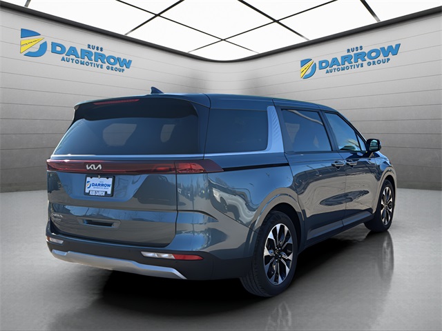 2024 Kia Carnival EX Astra Blue V6 FWD. Manufacturer certified, non-smoker, Bluetooth connection for mobile phone, Carfax 1-owner, good maintenance history, GPS navigation system, power liftgate, power sliding doors, premium heated leather upholstery, push button start, rear back-up camera with display, remote vehicle start system, Stow'n Go seating with 3rd row, Android Auto & Apple CarPlay, 3rd row seating, 8-passenger seating, blind spot monitoring, heated front seats, lane keep assist, rear parking assist, wireless charging pad, 4 brand new tires. Certified. Kia Certified Pre-Owned Details include powertrain limited warranty, transferable warranty, roadside assistance, vehicle history, 165 point inspection, limited warranty, and exclusive membership status in the Russ Darrow Rewards Program.