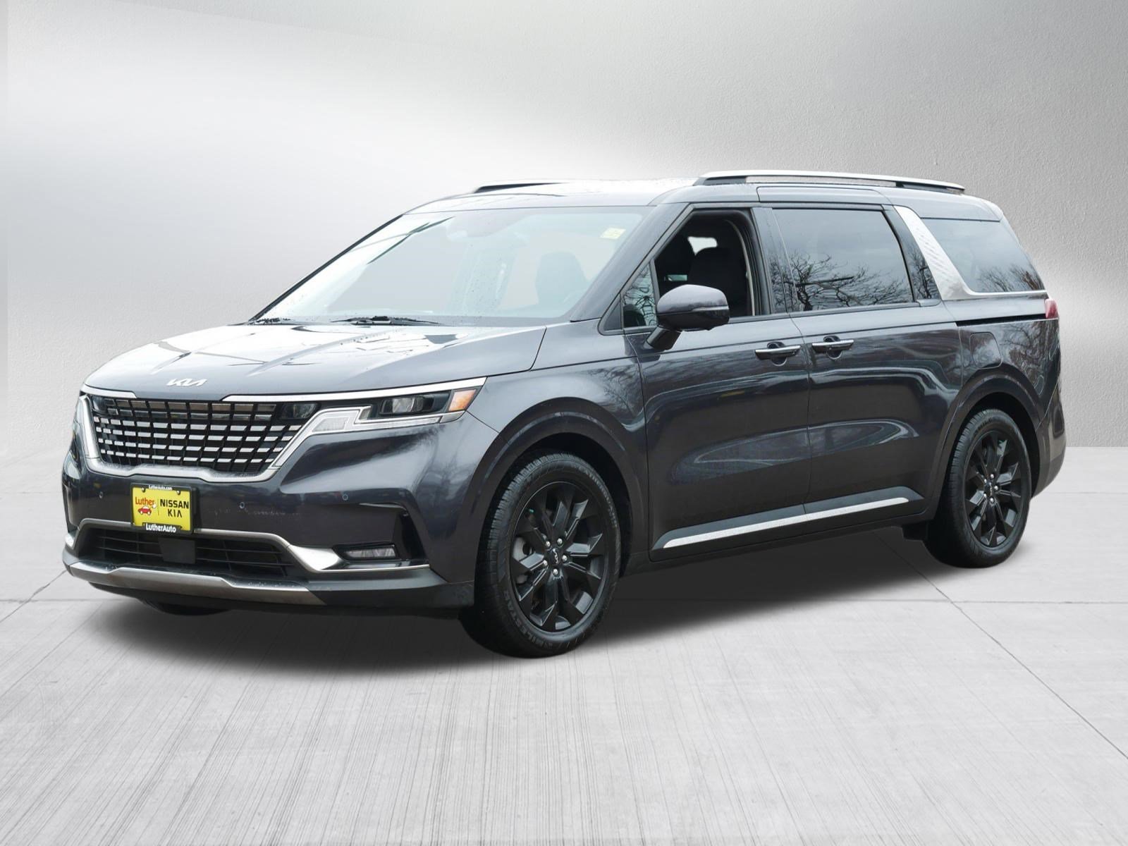 Kia Certified. Heated/Cooled Seats, 3rd Row Seat, Navigation, Alloy Wheels, MP3 Player. Fuel efficient 26 MPG Hwy/19 MPG City! Panthera Metal exterior and Gray interior, SX trim. Every vehicle must pass a 164-point inspection by Kia-trained technicians. 12 months / 12,000 miles of Platinum Comprehensive coverage, 10-year/100,000-mile limited powertrain warranty, Rental car coverage and travel breakdown assistance are included, 24/7 Roadside Assistance and Towing includes lockout service, jump start, flat tires, and more. CarFax vehicle history report is included with every Certified Kia. This Carnival is priced $3,200 below J.D. Power Retail. At Luther Nissan Kia Inver Grove, your satisfaction is our top priority. We're committed to making your car-buying experience as easy and enjoyable as possible, whether you're at our dealership or shopping online. With Luther Direct, you're just a few clicks away from Fair Value Pricing. Value Your Trade, Payment Calculator and More! We offer: Fair Value Pricing, Competitive trade-in values & no-pressure sales approach.
