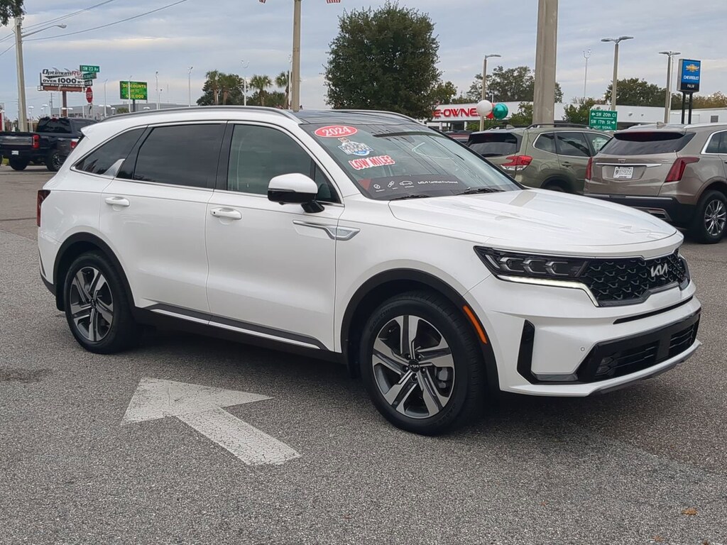 Get Our Lifetime Powertrain Warranty only at Jenkins Kia of Ocala! Contact us now for more details! Kia Certified Vehicles only available at Jenkins Kia of Ocala 2305 SW College Rd Ocala FL. For vehicle inquiries please call: 352-414-4546. Ultra-efficient luxury! 2024 Kia Sorento Hybrid SX Prestige. Stop spending your paycheck at the gas pump! This rare 2024 Kia Sorento Hybrid SX Prestige has just arrived in Ocala with 27,019 miles. It combines the incredible fuel economy of a hybrid with the top-tier luxury features of the "Prestige" trim combination that is incredibly hard to find on the used market. Turbo-Hybrid Performance Get the power you want with the efficiency you need. The 1.6L Turbocharged Hybrid powertrain produces a combined 227 horsepower and 258 lb-ft of torque. It delivers brisk acceleration for merging onto I-75 while achieving an impressive EPA-estimated 34 MPG Combined. Plus, with standard All-Wheel Drive (AWD), you have superior traction in all weather conditions. The "Prestige" Difference This isn't just a standard hybrid; it's the top-of-the-line model. Step inside and enjoy: Ventilated Front Seats Essential for keeping cool in the Florida heat. Bose Premium Audio System 12 speakers for concert-quality sound. Surround View Monitor (360 Camera) Park perfectly every time. Blind-Spot View Monitor A live video feed of your blind spot appears in the dash when you signal! Panoramic Sunroof Floods the cabin with natural light. Genuine Leather Seating and Second-Row Captain's Chairs. Highway Warrior Value With 27k miles in just one year, this vehicle has been a dedicated road warrior. These are highway miles, which are much gentler on the hybrid battery and transmission than city driving. You get a current model year vehicle that has already taken its initial depreciation hit, saving you thousands over new. Advanced Safety Standard Drive with total peace of mind. This vehicle is loaded with Kia Drive Wise safety tech, including Highway Driving Assist, Navigation-Based Smart Cruise Control, and Parking Collision-Avoidance Assist-Reverse. Don't miss this rare opportunity to own a fully loaded Hybrid SUV without the new-car markup.
