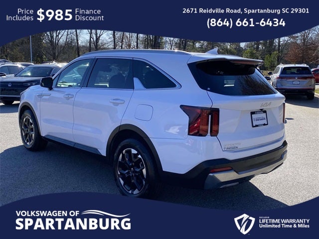 Recent Arrival! Certified. Carfax One-Owner. Clean Carfax. Glacial White Pearl 2024 Kia Sorento S FWD 8-Speed Automatic 2.5L I4 DGI DOHC 16V LEV3-SULEV30 191hp. Carfax 1-Owner, Clean Carfax, Lifetime Powertrain Warranty, Apple CarPlay & Android Auto, Auto High-beam Headlights, Automatic temperature control, Exterior Parking Camera Rear, Front dual zone A/C, Fully automatic headlights, Heated Front Bucket Seats, Navigation System, Smart Key w/ Push Button and Remote Start. Welcome to the All-New Volkswagen of Spartanburg! We are excited to introduce our latest lineup of Volkswagen vehicles and quality pre-owned options of all makes and models. At Volkswagen of Spartanburg, we are committed to providing exceptional customer service. Our knowledgeable and friendly sales team is ready to assist you in finding the perfect vehicle that fits both your lifestyle and budget. We are dedicated to ensuring that your car-buying journey is seamless and enjoyable from start to finish. Visit us today at Volkswagen of Spartanburg: Come in and see for yourself why we are the leading Volkswagen dealership in the area: 2671 Reidville Rd, Spartanburg, SC 29301 or call us at (864) 585-2492. We look forward to welcoming you and helping you drive away in your dream car! We offer flexible financing options to suit your needs.