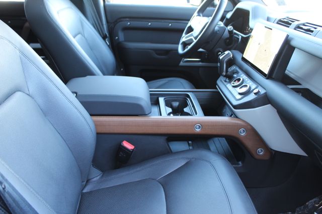 This is a 2024 Defender 110 SE V8, finished in Carpathian Grey with an Ebony leather interior, and its the kind of truck that makes valet attendants stand up straighter. Supercharged 5.0L V8. 500 horsepower. The kind of acceleration that feels disrespectful to physics, wrapped in a shape that looks ready to survive the apocalypse and steal the spotlight at dinner. Inside, its all business-class brutality. Ebony grained leather everywhere, heated rear seats with a 40:20:40 fold so passengers stay comfortable while your cargo gets flexible. The Rough-Cut Walnut veneer adds just enough polish to remind everyone this isnt a toy—it’s a luxury weapon. The 11.4" touchscreen runs the show, while the Head-Up Display keeps your eyes forward and your focus sharp. The Black Exterior Pack, Black Contrast Roof, and Black Signature Graphic turn the Defenders presence up to eleven. ClearSight rearview mirror gives you X-ray vision through cargo and gear, and the Meridian Surround Sound System makes sure your playlists hit as hard as the exhaust note. Three-zone climate control, Cabin Air Purification Plus, and air quality sensor mean everyone rides in comfort no matter how wild the day gets. It’s also loaded with the smart stuff: Emergency Pack, Premium Interior Protection and Storage Pack, Wheel Protection Pack, and rear recovery eyes that quietly say, Yes, I actually use this thing. And because this one is Land Rover Certified, its been inspected more thoroughly than TSA on a holiday weekend. You get a one-year Certified Pre-Owned warranty, 165-point inspection, roadside assistance, and the peace of mind that comes from knowing this Defender was vetted by people who actually know what they're doing. All of that, backed by Land Rover of Chantilly, where standards are high, details matter, and vehicles like this don't sit quietly in the corner. This isn't a status symbol. It’s a statement.