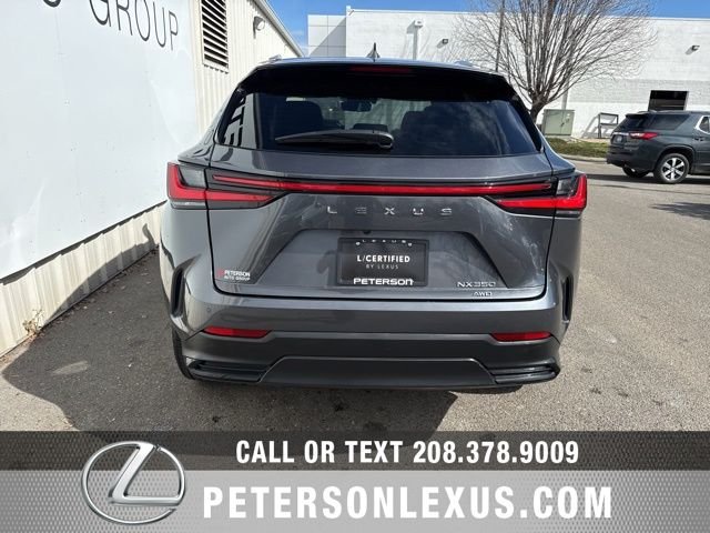 L/Certified 2024 Lexus NX 350 Premium AWD. Cloudburst Gray 2024 Lexus NX 350 Premium AWD One Owner, Clean History, Automatic Temperature Control, Back Up Camera, AWD, 14" Display Navigation, 18" Wheels, Active Cruise Control, Alloy wheels, Back Monitor, Brake assist, Cold Area Package, Electronic Stability Control, Exterior Parking Camera Rear, Heated & Ventilated Front Bucket Seats, Lane Change Assist, Leather Heated Steering Wheel with Paddles, Navigation system: Drive Connect Cloud Navigation (subscription required), NuLuxe Seat Trim, Power Heated Exterior Mirrors, Power Liftgate, Power moonroof, Premium Package, Telescoping steering wheel, Tilt steering wheel, Vision Package, Wiper & Window Deicer. Here at Peterson Lexus we are proud to offer you Treasure Valley's finest selection of new and quality pre-owned vehicles. With our upfront pricing, fully transparent buying process and our customer focused sales team, you can be assured that there is no better place to shop for your next car, truck or SUV.