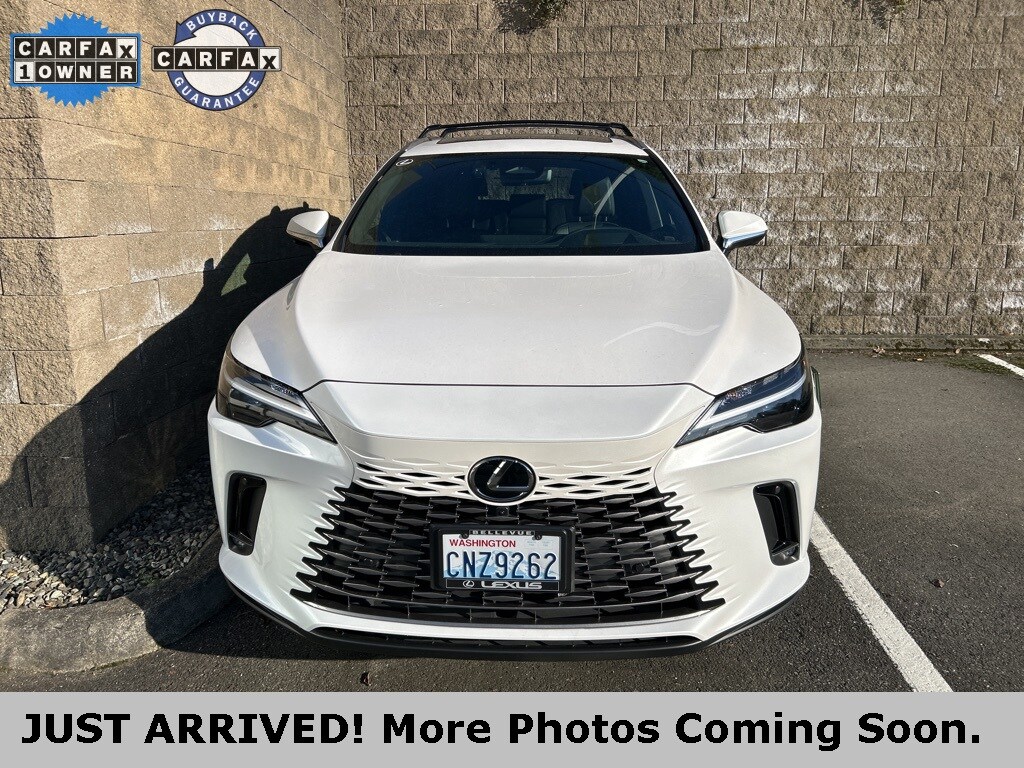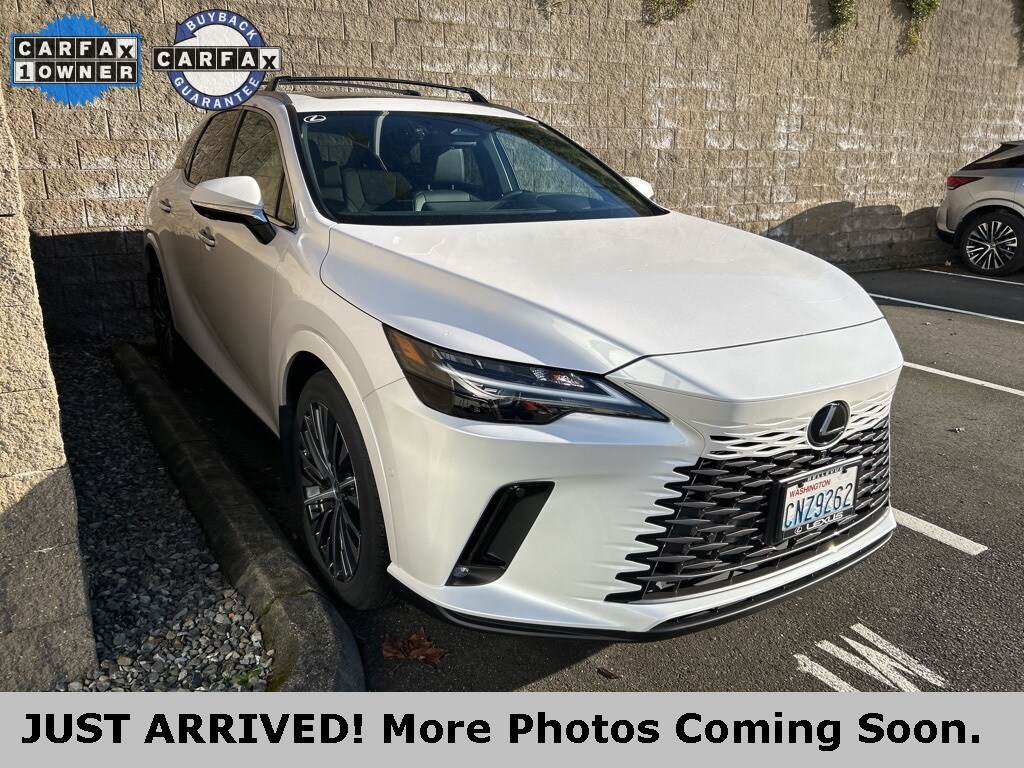 CARFAX One-Owner. 2 YEARS OR 20K MILES MAINTENANCE INCLUDED!, One owner on Carfax!, Local trade, bought here serviced here, Lexus factory certified, AWD, back up camera, Bluetooth, heads up display, heated and ventilated seats, navigation, parking sensors, premium plus package, Wood & Leather-Trimmed Heated Steering Wheel with Memory, Wireless Apple CarPlay Integration, Wireless Android Auto Capability, Blind Spot Monitor with Rear Cross Traffic Alert, Lexus Safety System+ 3.0: Lane Tracing Assist, Road Sign Assist, Pre-Collision System with Pedestrian Detection, Dynamic Radar Cruise Control with Curve Speed Management, Lane Departure Alert with Steering Assist, Intelligent High Beam Headlamps, 2.5L I4, AWD, Black with Black Open Pore Leather, 12 Speakers, 8-Way Power Adjustable Driver and Passenger Seat, Active Cruise Control, Alloy wheels, Cold Area Package, Convenience Package, Exterior Parking Camera Rear, Front Seat Air Conditioner, Heated and Ventilated Front Bucket Seats, Heated door mirrors, Heated steering wheel, Memory seat, Navigation System, Premium Plus Package, Radio: Lexus Interface with 14" HD Touchscreen Display, Rain sensing wipers, Speed control, Technology Package, Wheels: 21" 20-Spoke Alloy. 2024 Lexus RX 350h Premium Plus Eminent White Pearl AWD 2.5L I4 CVTCertified. L/Certified Details: Warranty Deductible: $0. CERTIFIED WARRANTY: Comprehensive Inspection, Unlimited-mileage warranty up to 6 years. Balance of new car warranty (4 Year/50K Miles) plus 2 Year/Unlimited-mileage L/Certified warranty. SERVICE MAINTENANCE: Complimentary Maintenance Plan covering the first four basic factory-scheduled maintenance services for 2 years or 20,000 miles. Limited Warranty: 24 Month/Unlimited Mile. Vehicle History. Roadside Assistance. Odometer is 5541 miles below market average! 37/34 City/Highway MPG. Come to www.lexusofbellevue.com To See Our Specials!! Call us at 425-455-9995 for Help with any of our departments. Enjoy a seamless, transparent luxury buying experience at Lexus of Bellevue and Lexus Plus.