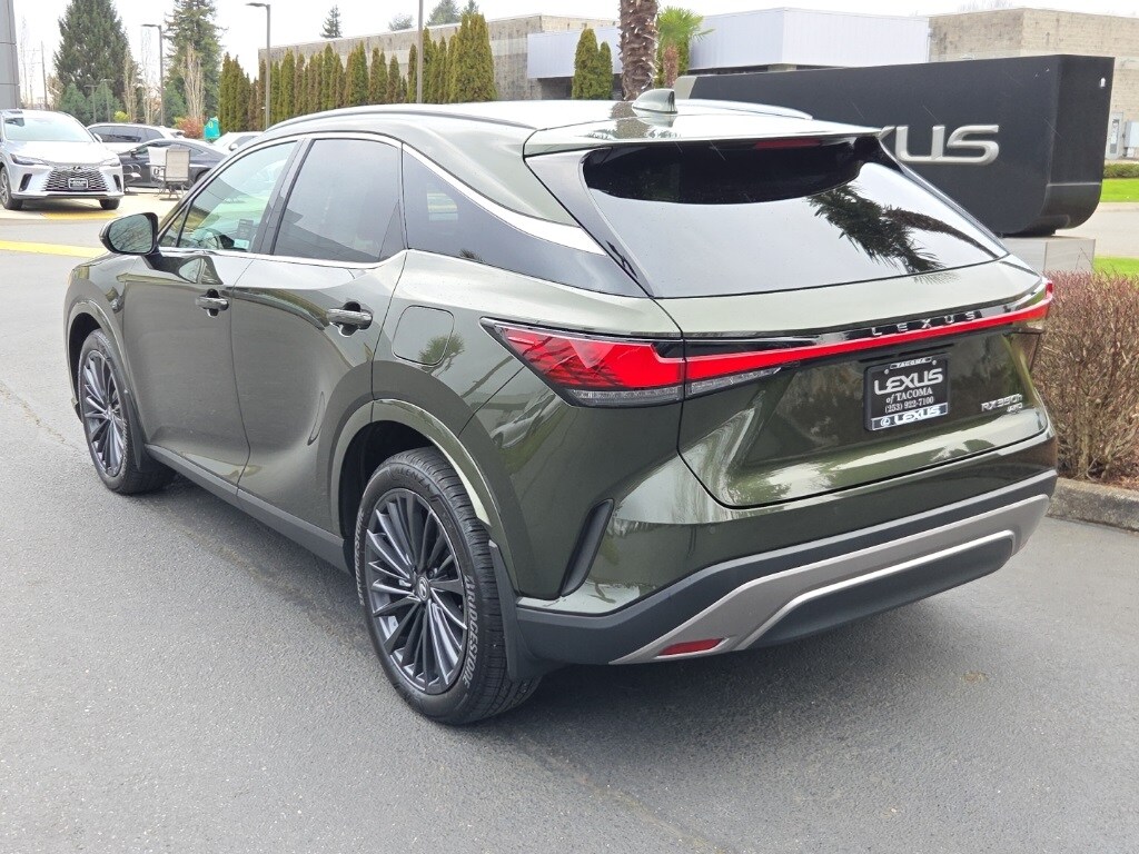 2024 Lexus RX Nori Green Pearl AWD 2.5L I4 CVTL/Certified Certified, 2.5L I4, AWD, Palomino w/Ash Bamboo w/NuLuxe Seat Trim, 12 Speakers, 19 Alloy Wheels, 3.64 Axle Ratio, 4-Wheel Disc Brakes, 8-Way Power Adjustable Driver & Passenger Seat, ABS brakes, Air Conditioning, Alloy wheels, AM/FM radio: SiriusXM, Anti-whiplash front head restraints, Auto High-beam Headlights, Auto tilt-away steering wheel, Auto-dimming door mirrors, Auto-dimming Rear-View mirror, Automatic temperature control, Brake assist, Bumpers: body-color, Compass, Delay-off headlights, Driver door bin, Driver vanity mirror, Dual front impact airbags, Dual front side impact airbags, Electronic Stability Control, Emergency communication system: Safety Connect (10-year trial), Exterior Parking Camera Rear, Four wheel independent suspension, Front anti-roll bar, Front Bucket Seats, Front Center Armrest, Front dual zone A/C, Front fog lights, Front reading lights, Front Seat Air Conditioner, Fully automatic headlights, Garage door transmitter: HomeLink, Heated & Ventilated Front Bucket Seats, Heated door mirrors, Heated front seats, Heated steering wheel, Illuminated entry, Leather Shift Knob, Leather steering wheel, Low tire pressure warning, Memory seat, Navigation System, NuLuxe Seat Trim, Occupant sensing airbag, Outside temperature display, Overhead airbag, Overhead console, Panic alarm, Passenger door bin, Passenger vanity mirror, Power door mirrors, Power driver seat, Power Liftgate, Power moonroof, Power passenger seat, Power steering, Power windows, Radio data system, Radio: Lexus Interface w/9.8 HD Touchscreen Display, Rain sensing wipers, Rear air conditioning, Rear anti-roll bar, Rear reading lights, Rear seat center armrest, Rear side impact airbag, Rear window defroster, Rear window wiper, Remote keyless entry, Security system, Speed control, Speed-sensing steering, Split folding rear seat, Spoiler, Steering wheel memory, Steering wheel mounted audio controls, Telescoping steering wheel, Tilt steering wheel, Traction control, Trip computer, Turn signal indicator mirrors, Variably intermittent wipers, Ventilated front seats. CARFAX One-Owner. Clean CARFAX. Certified. L/Certified Details: Limited Warranty: 24 Month/Unlimited Mile. Vehicle History. Certified Warranty: Comprehensive Inspection. Unlimited-mileage warranty up to 6 years. Balance of new car warranty (4 Year/50K Miles) plus 2 Year/Unlimited-mileage L/Certified warranty. Service Maintenance: Complimentary Maintenance Plan covering the first four basic factory-scheduled maintenance services for 2 years or 20,000 miles. Roadside Assistance. Warranty Deductible: $0.