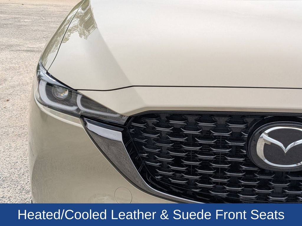 Turbocharged performance meets refined style in this 2024 Mazda CX-5 2.5 Carbon Turbo, VIN JM3KFBAY5R0413950, with 45,963 miles. With its distinctive Carbon Turbo design and athletic stance on 19 wheels, this SUV delivers a premium driving experience with an edge. Inside, heated and cooled leather & suede-trimmed front seats provide year-round comfort, while driver seat memory ensures a personalized fit every time you get behind the wheel. A head-up display keeps key driving information in your line of sight, and paddle shifters add a more engaging, responsive feel to every drive. Technology and sound are elevated with a Bose premium audio system featuring 10 speakers, paired with a 10.25 touchscreen for seamless control of your media and connectivity. A power liftgate adds everyday convenience, and the moonroof brings in natural light for a more open, upscale cabin. Adaptive LED headlamps enhance visibility in changing conditions, while black heated power mirrors add both function and a sleek exterior touch. A rear bumper guard helps protect the vehicle from daily wear, keeping it looking sharp. If you’re looking for an SUV that blends turbocharged performance, premium materials, and advanced features, this CX-5 Carbon Turbo stands out from the crowd.