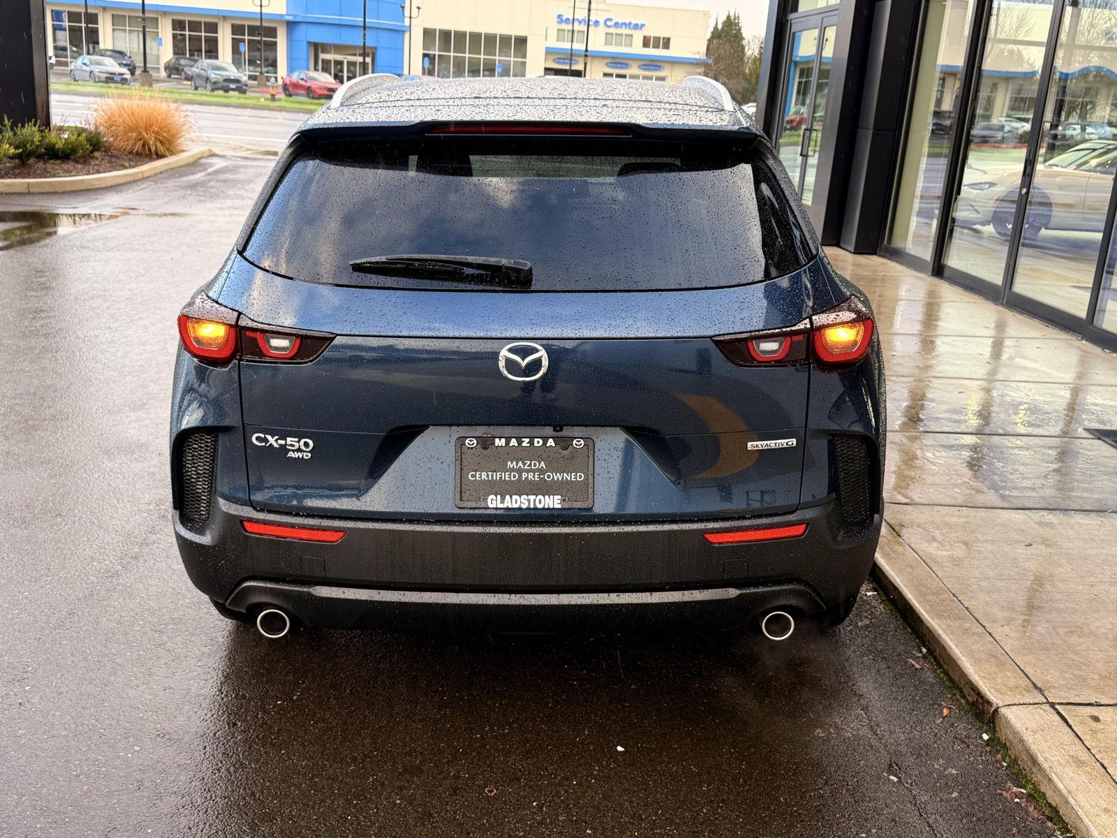 This Mazda Certified 2024 Mazda CX-50 2.5 S Select Package, has a Ingot Blue Metallic exterior color and a Black w/Gray interior color with 11,163 miles. The Stock Number is MP1508. You can connect with us by calling 503-652-9101. No Accidents! Mazda Certified Vehicles include a 160-point detailed inspection, 24 hour roadside assistance, 7-year/100,000-mile limited powertrain warranty, and 12-month/12,000-mile CPO limited warranty*see sales for details. Whether you are looking for a new or used Mazda car, truck, or SUV, you will find it here. We have customers in or near Gladstone, Portland, Beaverton, Vancouver, Oregon City, Clackamas, Lake Oswego, Happy Valley, Eagle Creek, West Linn, Tualatin, Wilsonville, Jennings Lodge, Aurora, Beaver Creek, Fairview, Sherwood, Canby and Mulino find the Mazda of their dreams! We know that prospective customers are extremely well-educated when researching their next vehicle. Mazda of Gladstone has made it easy to get all the available vehicle information so you can spend less time researching and more time enjoying your purchase. Check out our new specials and used specials for additional savings on your next vehicle. As your local Mazda dealer, we have a huge selection of new and used vehicles from which to choose. Mazda of Gladstone online and offline customers enjoy vehicle specials every day. We offer Mazda service & parts, an online inventory, and outstanding financing options, making Mazda of Gladstone a preferred dealer serving Gladstone, Portland, Beaverton, Vancouver, Oregon City, Clackamas, Lake Oswego, Happy Valley, Eagle Creek, West Linn, Tualatin, Wilsonville, Jennings Lodge, Aurora, Beaver Creek, Fairview, Sherwood, Canby and Mulino area Mazda buyers. Ready to set up a test drive? Visit our Portland area Mazda dealership in Gladstone, OR today!