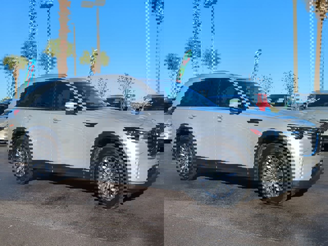 Certified. CARFAX One-Owner. Clean CARFAX. 2024 Mazda CX-90 3.3 Turbo Preferred Plus I6 Turbo AWD 8-Speed Automatic Platinum Quartz. Mazda Certified Pre-Owned Details: Includes Autocheck Vehicle History Report with 3 Year Buyback Protection. 3 month SiriusXM trial subscription. Warranty Deductible: $0. Vehicle History. Transferable Warranty. Powertrain Limited Warranty: 84 Month/100,000 Mile (whichever comes first) from original in-service date. 160 Point Inspection. Roadside Assistance. Limited Warranty: 12 Month/12,000 Mile (whichever comes first) after new car warranty expires or from certified purchase date. This 2024 Mazda CX-90 features Mazda Certified Pre-Owned Certified, 2nd-Row Captain's Chairs, 3rd row seats: bench, Alloy wheels, AM/FM radio, AppLink/Apple CarPlay and Android Auto, Auto High-beam Headlights, Automatic temperature control, Brake assist, Bumpers: body-color, Compass, Delay-off headlights, Driver door bin, Driver vanity mirror, Dual front impact airbags, Dual front side impact airbags, E911 Automatic Emergency Notification, Electronic Stability Control, Emergency communication system: MAZDA CONNECT, Exterior Parking Camera Rear, Four wheel independent suspension, Front anti-roll bar, Front Bucket Seats, Front Center Armrest w/Storage, Front dual zone A/C, Front reading lights, Fully automatic headlights, Heads-Up Display, Heated door mirrors, Heated Front Bucket Seats, Heated front seats, Illuminated entry, Infotainment System Voice Command, Knee airbag, Leather Seat Trim, Leather Shift Knob, Leather steering wheel, Low tire pressure warning, Mazda Connected Services, Occupant sensing airbag, Outside temperature display, Overhead airbag, Overhead console, Pandora Internet Radio Integration, Panic alarm, Passenger door bin, Passenger vanity mirror, Power door mirrors, Power driver seat, Power Liftgate, Power moonroof, Power passenger seat, Power steering, Power windows, Radio Broadcast Data System Program Information, Radio data system, Radio: AM/FM Sound System, Rain sensing wipers, Rear air conditioning, Rear anti-roll bar, Rear reading lights, Rear seat center armrest, Rear window defroster, Rear window wiper, Remote keyless entry, SMS Text Msg Audio Delivery & Reply, Speed control, Speed-sensing steering, Split folding rear seat, Spoiler, Steering wheel mounted audio controls, Tachometer, Telescoping steering wheel, Tilt steering wheel, Traction control, Trip computer, Turn signal indicator mirrors, Variably intermittent wipers.