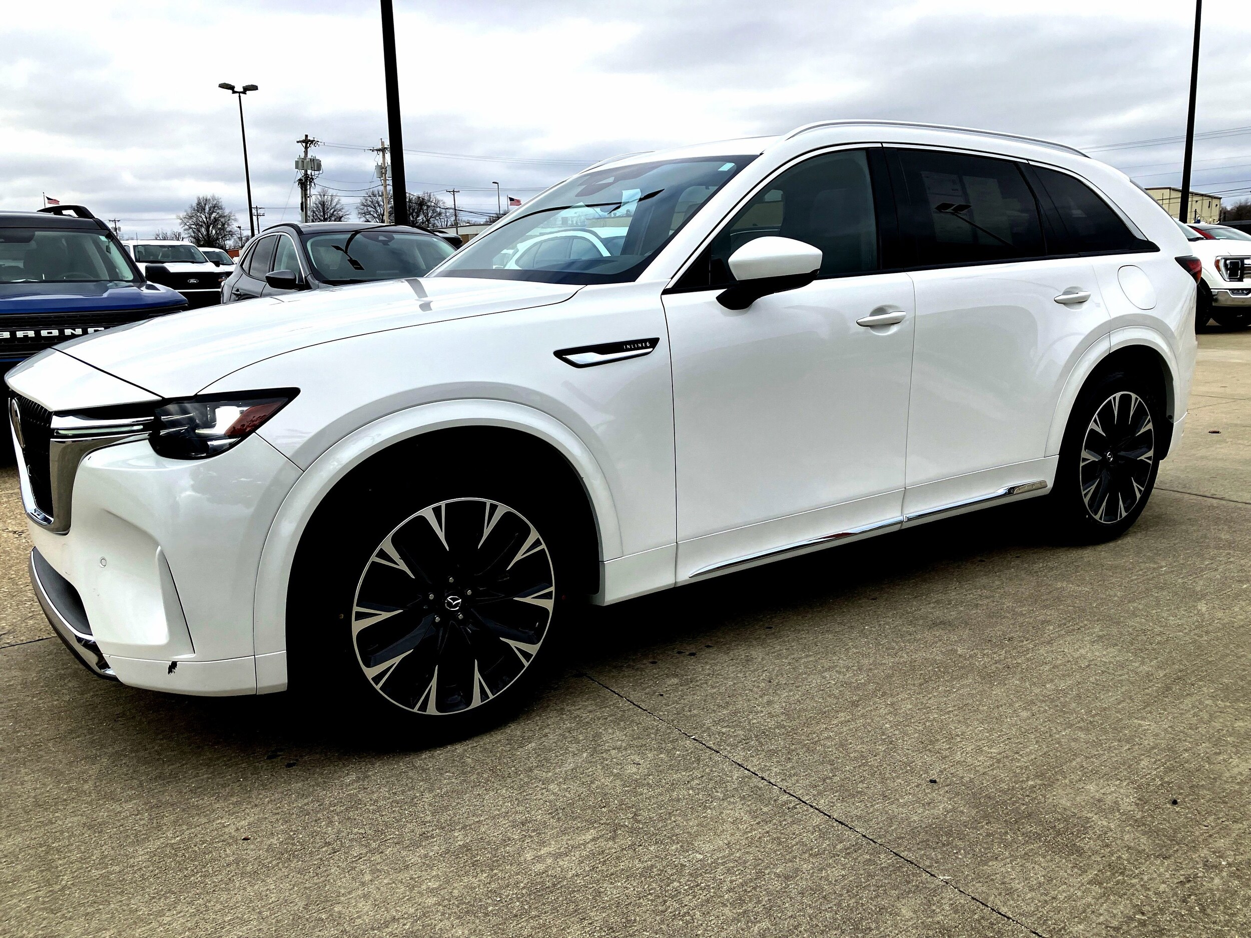 Discover premium luxury and exhilarating performance in this stunning 2024 Mazda CX-90 3.3 Turbo- S Premium! Finished in elegant Rhodium White Premium exterior with sophisticated Black leather interior, this three-row SUV blends Mazda's signature driving dynamics with upscale comfort and advanced technology. This CX-90 Turbo S Premium delivers a truly premium driving experience with Mazda's renowned handling, spacious versatility, and cutting-edge features. Stop by Ruxer Ford today to experience it firsthand!