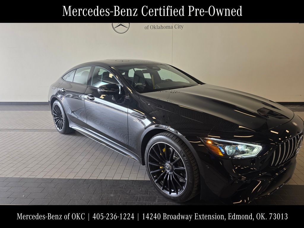 This is a Certified Pre-Owned Obsidian Black Metallic 2024 Mercedes-Benz AMG® GT 43 Base with 3747 miles and a Titanium Gray/Black interior. Every Certified Pre-Owned Mercedes-Benz now comes with industry-leading coverage: an unlimited-mileage warranty for one year that can be extended for up to two additional years. This Certified Pre-Owned AMG® GT 43 is loaded with some great options: Certified. Clean CARFAX. CARFAX One-Owner. Odometer is 5559 miles below market average! I6, 3-Zone Climate Control, AMG® Night Package (P60), AMG® Performance Exhaust System, AMG® Performance Microfiber Steering Wheel, Apple CarPlay®/Android Auto®, Auto High-beam Headlights, Black-Chrome Exhaust Tips, Exterior Parking Camera Rear, Heated & Ventilated Front Seats, High-Gloss Black Front Splitter, High-Gloss Black Mirror Covers, High-Gloss Black Rear Diffuser Insert, High-Gloss Black Side Sill Inserts, High-Gloss Black Window Trim, Panorama Sunroof, Power Liftgate, Wheels: 9.5 x 20 Fr/11 x 20 Rr AMG® Black. At Mercedes-Benz of Oklahoma City, we pride ourselves in providing a transparent, time-saving, and customized car buying experience. Oklahoma City’s only official Mercedes-Benz Dealership! Shop new, pre-owned, and Certified Mercedes-Benz vehicles from the convenience of your home. Even get a trade-in value without stopping into the dealership. Conveniently located in Oklahoma City on the Broadway Extension, just minutes from Edmond, Moore, Norman, and Yukon. Visit our website for a complimentary CarFax report. While we make every effort to ensure the accuracy of vehicle information and pricing, absolute accuracy cannot be guaranteed. Information subject to change; for current information on this particular vehicle please contact our staff. AMG® and 4MATIC® are registered trademarks of Mercedes-Benz Group AG. Android AutoTM is a trademark of Google LLC. Harman/Kardon® and Logic 7 are registered marks of Harman International Industries, Incorporated. Burmester® is a registered trademark of Burmester Audiosysteme GmbH, Berlin, Germany. Bluetooth® is a registered mark of Bluetooth SIG, Inc.