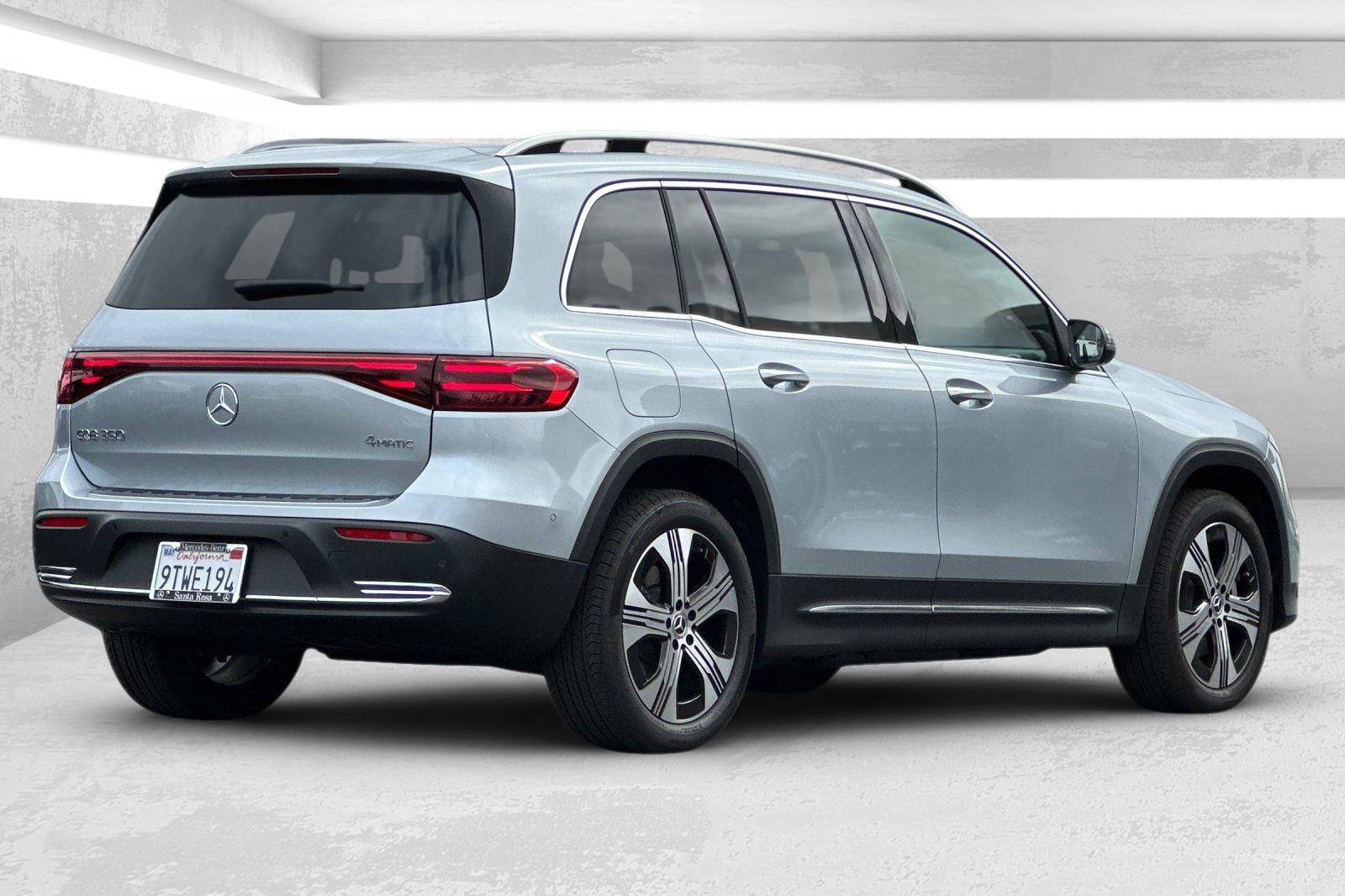Clean CARFAX. Certified. This 2024 Cirrus Silver Metallic Mercedes-Benz EQB 350 AWD is well equipped and includes these features and benefits: Mercedes-Benz Certified, 10 Speakers, 4-Wheel Disc Brakes, 8-Way Power Front Comfort Seats, 9.576 Front & 11.883 Rear Axle Ratio, ABS brakes, Air Conditioning, Alloy wheels, Apple CarPlay/Android Auto, Auto High-beam Headlights, Auto-dimming door mirrors, Automatic temperature control, Brake assist, Bumpers: body-color, Child-Seat-Sensing Airbag, Delay-off headlights, Driver door bin, Driver vanity mirror, Dual front impact airbags, Dual front side impact airbags, Electronic Stability Control, Emergency communication system: Mercedes-Benz Emergency Call Service, Exterior Parking Camera Rear, Four wheel independent suspension, Front anti-roll bar, Front Bucket Seats, Front Center Armrest, Front dual zone A/C, Front fog lights, Front reading lights, Fully automatic headlights, Heated door mirrors, Illuminated entry, Knee airbag, Leather steering wheel, Low tire pressure warning, MB-Tex Upholstery, Memory seat, Mid-Line Sound System, Navigation, Navigation system: Navigation with Electric Intelligence, Occupant sensing airbag, Outside temperature display, Overhead airbag, Overhead console, Panic alarm, Passenger door bin, Passenger vanity mirror, Power door mirrors, Power driver seat, Power Liftgate, Power moonroof: Panoramic, Power passenger seat, Power steering, Power windows, Premium audio system: MBUX, Radio data system, Radio: Mercedes-Benz User Experience (MBUX), Rain sensing wipers, Rear anti-roll bar, Rear fog lights, Rear reading lights, Rear seat center armrest, Rear window defroster, Rear window wiper, Remote keyless entry, Security system, SiriusXM Radio, Speed control, Speed-sensing steering, Split folding rear seat, Spoiler, Steering wheel mounted audio controls, Telescoping steering wheel, Tilt steering wheel, Traction control, Trip computer, Turn signal indicator mirrors, Variably intermittent wipers, and Wheels: 7.5J x 19" ET 53.5 AMG 10-Spoke. Electric Motor. Odometer is 1225 miles below market average! 89/85 City/Highway MPG.