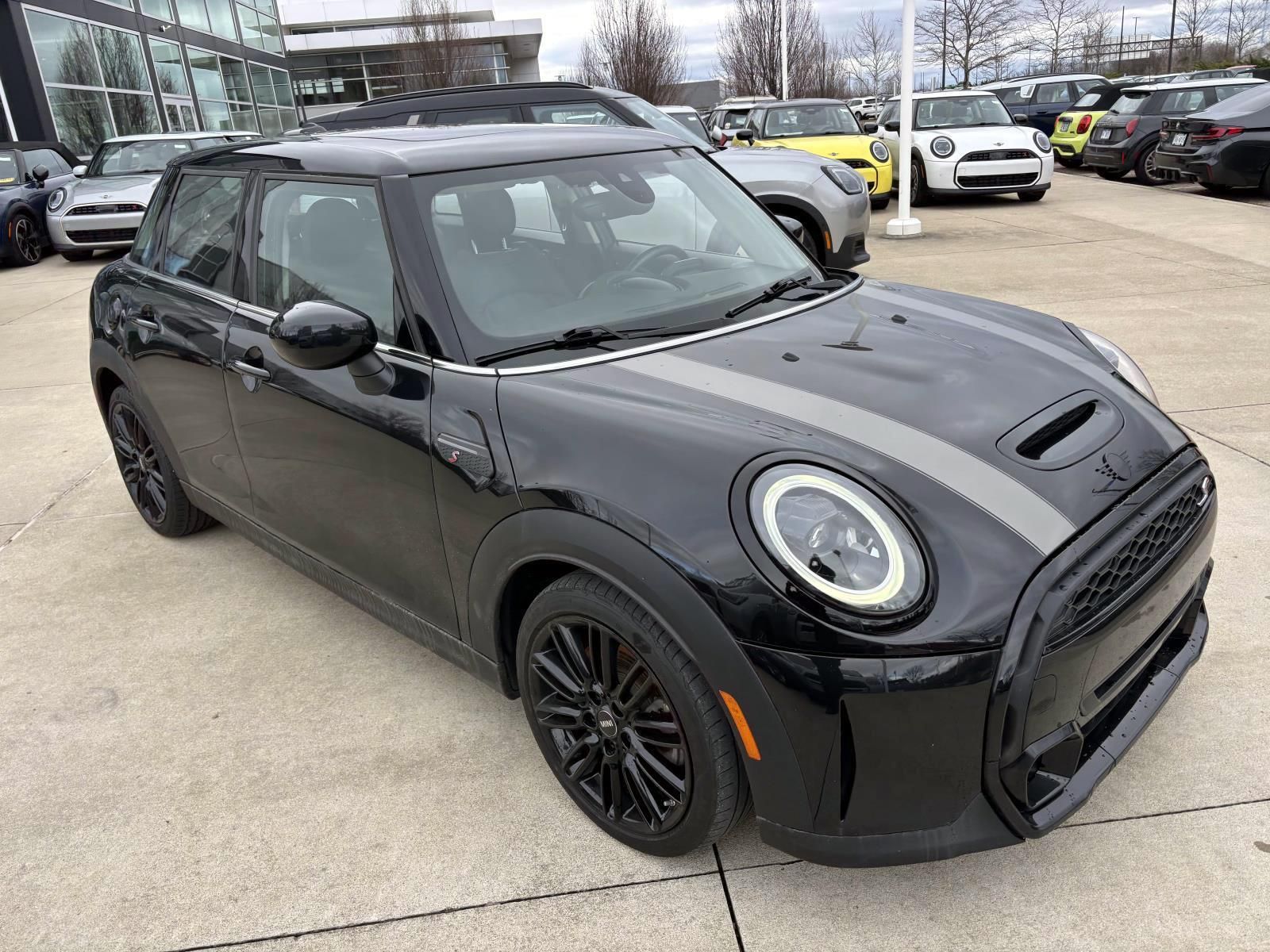 Certified. Midnight Black II 2024 MINI Cooper S FWD 2.0L 16V TwinPower Turbo WMW53DK06R2U93280, 23,691 mi., CPO warranty until 07/29/2028 or unlimited miles, Active Driving Assistant, Aluminum Interior Surface, Ambient Lighting, Apple CarPlay Compatibility, Auto-Dimming Rear-View Mirror, Body Color Roof, Comfort Access Keyless Entry, ConnectedDrive Services, Dual Zone Auto Climate Control, Dynamic Digital Instrument Cluster, Enhanced USB & Bluetooth, Front Center Armrest, Heated Front Seats, MINI Assist eCall, MINI Connected, MINI Driving Modes, MINI Head-Up Display, MINI Navigation, MINI TeleServices, Navigation System, Panoramic Moonroof, Power-Folding Mirrors, Rear Park Distance Control, Rear-View Camera, Remote Services, SiriusXM Satellite Radio w/1 Year Subscription, and Wheels: 17" x 7.0" Tentacle Spoke Silver Alloy. Recent Arrival! 23/33 City/Highway MPG. MINI.