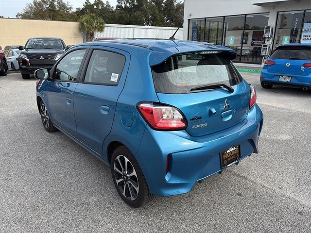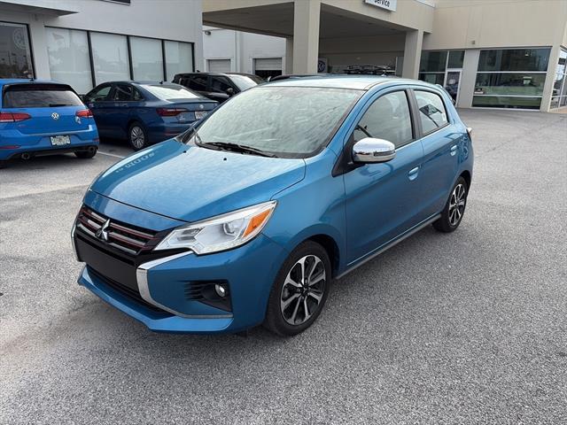 Low mileage alert! This Blue 2024 Mitsubishi Mirage Black Edition Hatchback has just 5,275 miles on the odometer. Enjoy standout style with black accents, a black rear spoiler, and body-color bumpers. Perfect for city driving, it features a fuel-efficient 1.2L engine, CVT, and advanced safety tech including Front Automatic Emergency Braking, Pedestrian Detection, and a Rearview Camera. Stay connected with a 7-inch Smartphone Link Display Audio system, Apple CarPlay, Android Auto, Bluetooth, and voice-operated messaging. Comfort features include automatic climate control, height-adjustable driver seat, cruise control, and split-fold rear seats for versatile cargo space. With keyless entry, USB ports, and a maintenance-free battery, this Mirage is ready for your next adventure. Drive smart, safe, and stylish-schedule your test drive today!