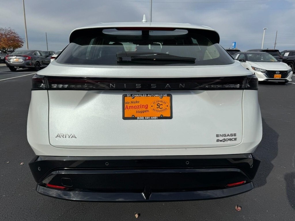 CARFAX One-Owner. Certified. Everest White Pearl Tricoat 2024 Nissan Ariya 4D Sport Utility Engage e-4orce Electric Motor AWD CVT Odometer is 1244 miles below market average! Clean CARFAX. We Make AMAZING Happen at St. Charles Nissan. Serving the St. Charles County and St. Louis Metro area since 1979! New, Used, and Certified Vehicles Advertised Price does not include dealer installed accessories. Prices do not include additional fees and costs of closing, including destination fee, government fees and taxes, any finance charges, $599 administration fee, any emissions testing fees or other fees. Contact dealer for most current information. Pictures, options and mileage are deemed reliable, but not guaranteed. All rebates and discounts have been deducted from sale price including destination to meet the requirements of the manufacturer. Low Price Promise!! Stop in today to find out why your friends and neighbors buy thousands of cars from us each year! Customers may not qualify for all rebates used in determining sale price. Must finance through Nissan Motor Finance for special APR & some incentive programs. We carry the largest Nissan inventory in the state of Missouri and back up our commitment to offer the greatest selection and purchasing convenience to our customers. You will find no dealer mark-ups or addendums to the manufacturer's sticker prices here. We mean it when we say & No Gimmicks - No Games! We attempt to make your buying experience straight-forward. St. Charles Nissan is not responsible for any errors on vehicle options. At St. Charles Nissan, the #1 volume Nissan dealership in Missouri for 2024, you’ll find the largest selection of new and used cars for sale near you—with best prices, fast financing, and top trade-in values.