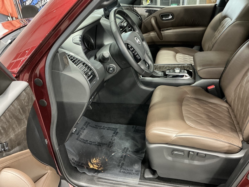 Step into luxury with the 2024 Nissan Armada Platinum, an epitome of rugged elegance dressed in an eye-catching Coulis Red Pearl with a stunning brown interior. This 4WD SUV pairs the unyielding strength of a 5.6L V8 DOHC engine boasting 400 horsepower with the smooth sophistication of a 7-speed automatic transmission, ready to conquer any terrain with authority and grace. Whether you're navigating city streets or off-the-beaten paths, experience unmatched control and comfort, promising adventures filled with excitement. Inside, the Armada takes opulence to a new level with quilted leather seats that offer supreme comfort, whether you're commuting to work or embarking on a family road trip. The Captain's Chairs Package ensures everyone travels with first-class ease, while the power moonroof adds a touch of openness and connection with nature. The interior climate is perfect, thanks to the automatic temperature control with front dual zone A/C and rear air conditioning, keeping your ride as cool or warm as you prefer. Technology breathes through every detail of this SUV. The premium 13-speaker audio system surrounds you with enriched sound, turning every drive into a concert. Stay on course and connected with the Navigation System and NissanConnect with SiriusXM, while the Intelligent Around View Monitor ensures you park like a pro in challenging spots. Remote start and power amenities like the power liftgate and steering wheel memory make your daily driving rituals simply effortless. Safety is a priority, and the Armada has you covered. With features like the Anti-whiplash head restraints, dual front and side airbags, an emergency communication system, and the advanced Nissan Safety Shield, peace of mind follows you on every journey. Road sensing adjustments with auto-leveling rear suspension and speed-sensing steering refine your drive for ultimate precision and safety. This Armada understands lifestyle demands with its practical yet elegant design. From towing capabilities courtesy of the Trailer Tow Hitch to the cargo and seating flexibility with its 3rd-row split-bench seat, this SUV transitions effortlessly from family duties to adventure outings. The 22" alloy wheels enhance its bold, dynamic stance and ensure you're noticed wherever you go. Come experience the 2024 Nissan Armada Platinum at Newton Nissan! Our team is here to offer transparent pricing and a stress-free buying experience. Visit us today and take the first step toward transforming your journeys into extraordinary adventures in this powerhouse of luxury and capability.
