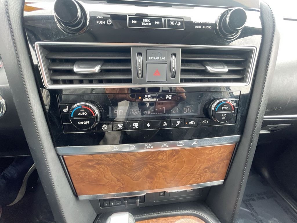 This 2024 Nissan Armada has passed the Lynnes comprehensive 172 point inspection with flying colors. Our ASE certified technicians have inspected this Armada and have brought it up to date with all its regularly scheduled maintenance. Buy this Armada and have confidence that it will bring you years of reliable transportation. Certified. CARFAX One-Owner. Clean CARFAX. 2024 Nissan Armada SL Super Black 7-Speed Automatic 4WD 5.6L V8 DOHC 32V LEV3-ULEV125 400hp. Drive Home Happy Promise, New Beginnings Automotive Financing - Our Goal 100% credit Approval, Nissan Certified Certified, 4WD, 13 Speakers, 2.937 Axle Ratio, 3rd Row Carpeted Floor Mats - Bench Seat, 3rd row seats: split-bench, 4-Wheel Disc Brakes, ABS brakes, Air Conditioning, Alloy wheels, AM/FM radio: SiriusXM, Anti-whiplash front head restraints, Auto High-beam Headlights, Auto tilt-away steering wheel, Auto-dimming door mirrors, Auto-dimming Rear-View mirror, Auto-leveling suspension, Automatic temperature control, Brake assist, Bumpers: body-color, Delay-off headlights, Driver door bin, Driver vanity mirror, Dual front impact airbags, Dual front side impact airbags, Electronic Stability Control, Emergency communication system: NissanConnect Services, Exterior Parking Camera Rear, Four wheel independent suspension, Front anti-roll bar, Front Bucket Seats, Front Center Armrest, Front dual zone A/C, Front fog lights, Front reading lights, Fully automatic headlights, Garage door transmitter: HomeLink, Heated door mirrors, Heated Front Bucket Seats, Heated front seats, Heated steering wheel, HVAC memory, Illuminated entry, Knee airbag, Leather Shift Knob, Leather steering wheel, Leather-Appointed Seat Trim, Low tire pressure warning, Memory seat, Navigation System, Occupant sensing airbag, Outside temperature display, Overhead airbag, Overhead console, Panic alarm, Passenger door bin, Passenger vanity mirror, Power door mirrors, Power driver seat, Power Liftgate, Power moonroof, Power passenger seat, Power steering, Power windows, Radio: NissanConnect w/SiriusXM, Rear air conditioning, Rear anti-roll bar, Rear reading lights, Rear seat center armrest, Rear window defroster, Rear window wiper, Reclining 3rd row seat, Remote keyless entry, Security system, Speed control, Speed-sensing steering, Speed-Sensitive Wipers, Split folding rear seat, Spoiler, Steering wheel memory, Steering wheel mounted audio controls, Tachometer, Telescoping steering wheel, Tilt steering wheel, Traction control, Trip computer, Turn signal indicator mirrors.