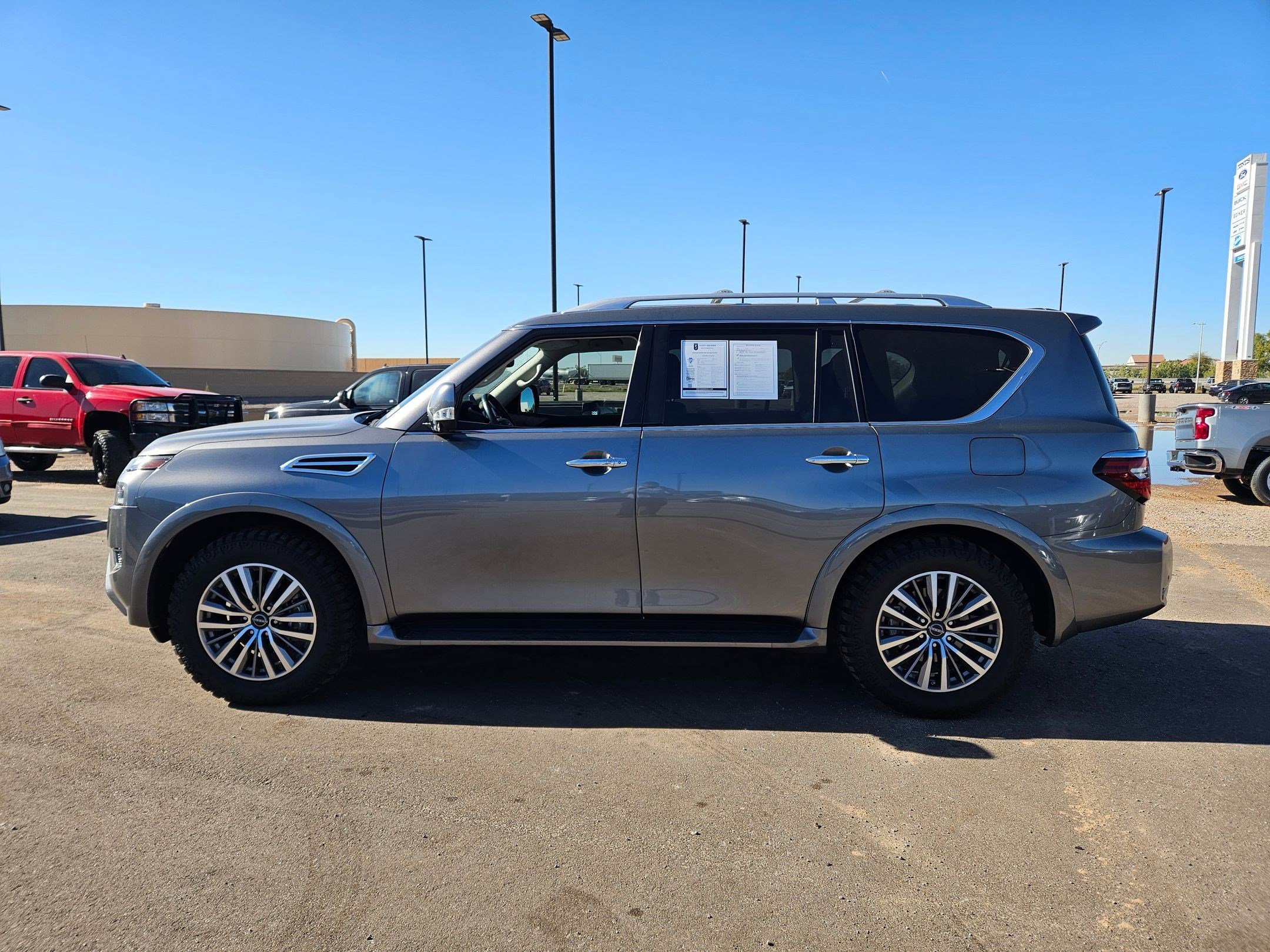 Recent Arrival! Certified. Gun Metallic 2024 Nissan Armada SL 4D Sport Utility 5.6L V8 DOHC 32V LEV3-ULEV125 400hp 4WD 7-Speed Automatic. Clean CARFAX. JSC Certified, 4WD, 3rd Row Carpeted Floor Mats - Bench Seat, 3rd row seats: split-bench, Auto tilt-away steering wheel, Auto-dimming Rear-View mirror, Automatic temperature control, Delay-off headlights, Exterior Parking Camera Rear, Front dual zone A/C, Fully automatic headlights, Garage door transmitter: HomeLink, Heated door mirrors, Heated Front Bucket Seats, Heated steering wheel, HVAC memory, Leather-Appointed Seat Trim, Memory seat, Navigation System, Outside temperature display, Overhead console, Power Liftgate, Power moonroof, Radio: NissanConnect w/SiriusXM, Rear air conditioning, Security system, Speed control, Speed-Sensitive Wipers, Steering wheel memory, Steering wheel mounted audio controls, Telescoping steering wheel, Tilt steering wheel, Turn signal indicator mirrors.