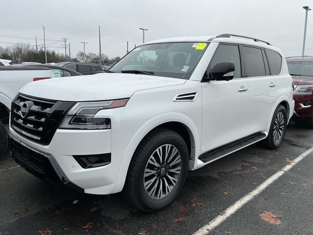 Introducing the 2024 Nissan Armada SL Midnight Edition in Aspen White, a commanding presence with its 4WD prowess and inimitable style. This capacious SUV, powered by a robust 5.6L V8 engine delivering a remarkable 400 horsepower, effortlessly conquers both city streets and rugged trails, promising you the power and control you demand from a premium SUV. The 7-speed automatic transmission ensures a smooth, confident ride, making every journey an exhilarating experience. Step inside and discover the captivating Midnight Edition Charcoal interior that blends comfort and sophistication. The first and second rows boast plush leather-appointed seating, highlighted by heated front bucket seats that cradle you in unparalleled comfort. The captain's chairs in the second row provide a touch of luxury and versatility, while the panoramic moonroof floods the cabin with natural light, enhancing every adventure you embark upon. Tech enthusiasts will revel in the Armadas state-of-the-art technologies. Equipped with NissanConnect and a navigation system, you're always connected and on course, no matter your destination. The Bose Premium Audio system featuring 13 speakers turns every drive into a concert, immersing you in crystal-clear, high-fidelity sound. Intelligent Around View Monitor and remote keyless entry add layers of convenience and safety, ensuring peace of mind at every turn. Safety is paramount in the Armada, with features like dual front impact airbags, an intelligent emergency communication system, and a comprehensive suite of stability controls that keep you and your loved ones protected on every drive. The backup camera further enhances your confidence, making parking and maneuvering effortless. Tailored for those who seek both luxury and performance, the 2024 Nissan Armada SL Midnight Edition is perfect for family adventures, weekend getaways, or sophisticated outings. Its bold black painted grille and roof rails exude a magnetic allure that captivates at first glance, while 20" alloy wheels complete its refined, athletic stance. Experience the harmony of power, style, and innovation. At Newton Nissan, we provide transparent pricing and a customer-friendly buying experience. Take the first step towards owning this remarkable SUV, and visit us today and let the Armada redefine your journey.