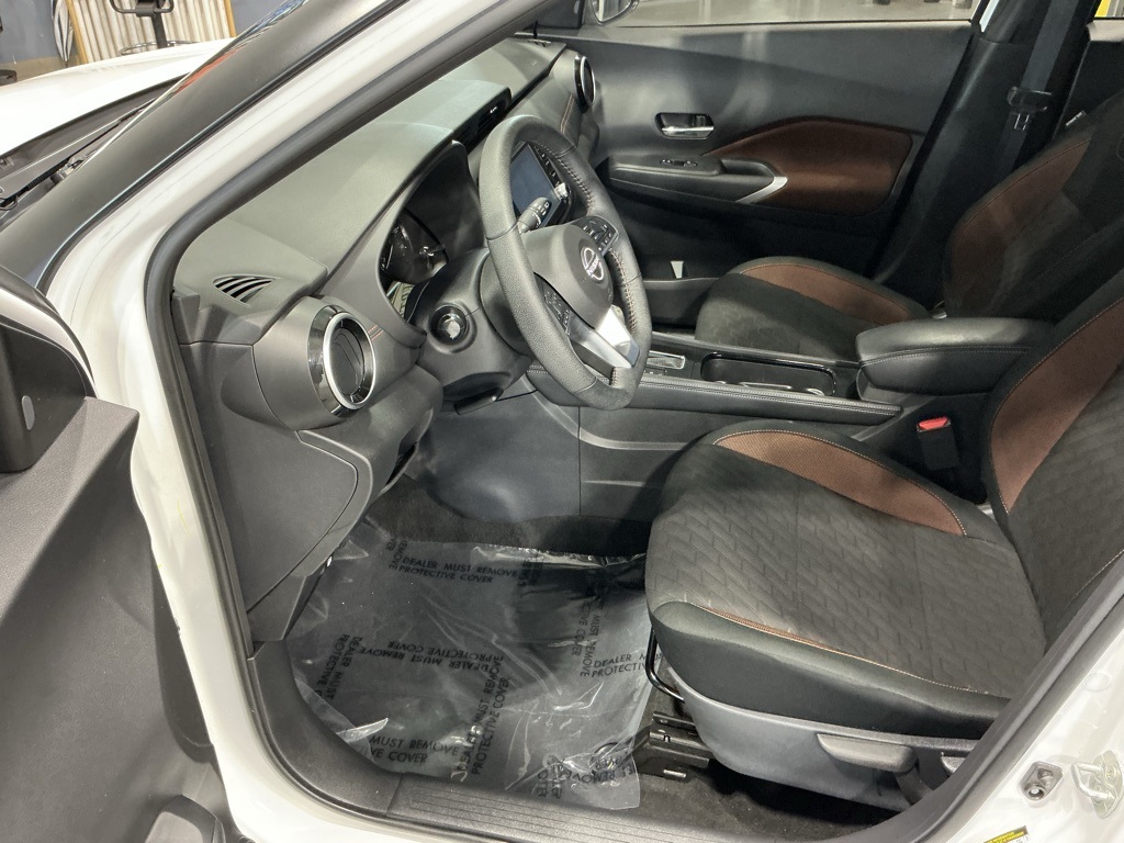 The 2024 Nissan Kicks SR in Aspen White Tricoat with a striking Super Black accent is your passport to stylish city adventures and weekend road trips. Powered by a lively 1.6L 4-Cylinder engine, and a smooth CVT with Xtronic, this urban crossover offers outstanding fuel efficiency and responsive performance, making busy city streets or open highways a delight to navigate. Inside, the charcoal interior boasts comfort and advanced technology that keeps you connected seamlessly. Effortlessly control your environment with automatic temperature control, while enjoying your favorite tunes on a 6-speaker sound system with AM/FM radio and SiriusXM capabilities (subscription required) that make each drive a sonic experience. The leather-wrapped sport steering wheel, front bucket seats, and telescoping steering wheel ensure you're always in the perfect driving position for both short commutes and long journeys. Safety takes priority with advanced driver-assist features including Blind Spot Warning and a comprehensive suite of airbags for unrivaled peace of mind. The RearView Monitor and rear parking sensors take the hassle out of tight parking spots, while auto high-beam headlights ensure you always see and are seen when the sun goes down. The Kicks SR's electronic stability control and anti-lock brakes stand ready to support you through whatever road conditions arise. Designed for a modern lifestyle, it integrates Apple CarPlay and Android Auto for a wire-free connection to your digital world, making navigation and calls hands-free and effortless. The exterior's 17" black alloy wheels and SR rear roof spoiler complement the vibrant two-tone color scheme, enhancing its sporty appearance. Details such as heated mirrors and turn signal indicators add both style and functionality for every journey. Whether you're commuting through the city or headed out for a weekend adventure, the 2024 Nissan Kicks SR is equipped to elevate every mile. At Newton Nissan, our transparent pricing and outstanding customer reviews underscore our commitment to your complete satisfaction. Visit us today to experience this stunning, technologically advanced crossover that fits effortlessly into your life.