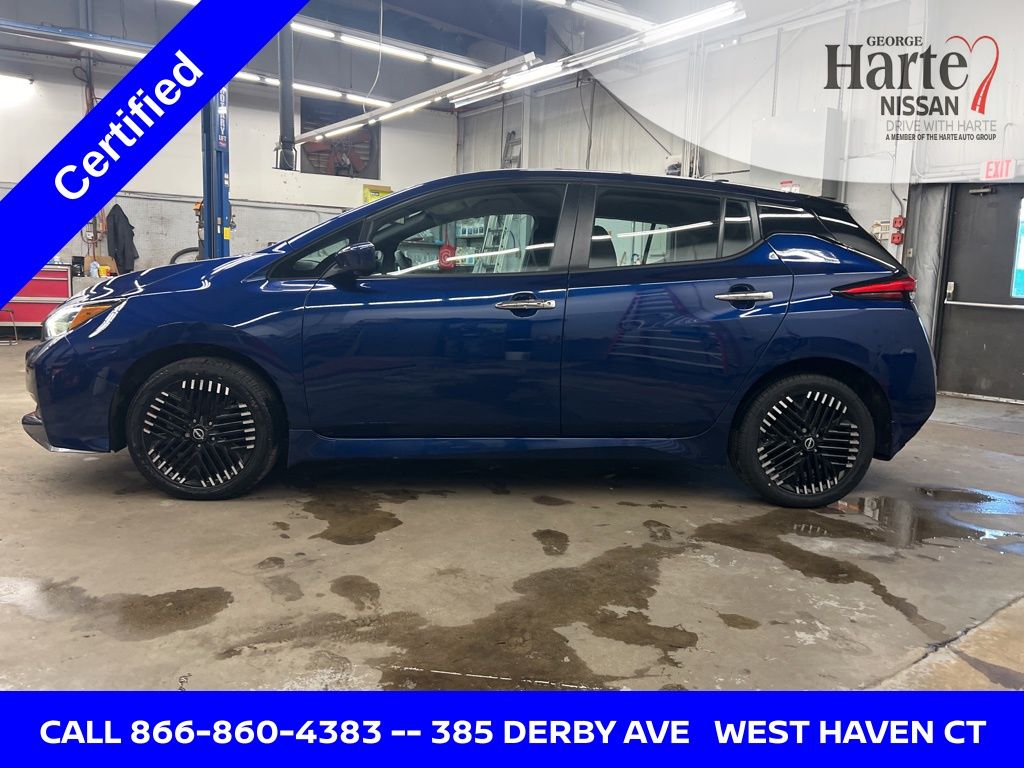 George Harte Nissan Trusted Nissan Dealer in West Haven, Connecticut Family-Owned and Operated Since the 1950s Certified 2024 Nissan Leaf SV Plus One Owner. Clean Carfax. Fully Electric Hatchback for Sale in Connecticut Discover exceptional value and advanced electric performance with this 2024 Nissan Leaf SV Plus for sale at George Harte Nissan in West Haven, Connecticut. Finished in eye-catching Deep Blue Pearl with a Black cloth interior, this one-owner, clean Carfax Nissan Leaf SV Plus is Harte Certified Plus and ready to deliver reliable, cost-effective electric driving. This used 2024 Nissan Leaf SV Plus is powered by a responsive electric motor paired with a single speed reducer and front wheel drive, offering smooth acceleration, quiet operation, and impressive efficiency rated at 121 MPGe city and 98 MPGe highway. With only 27,429 miles, this certified used Nissan Leaf is an ideal option for drivers searching for a dependable electric vehicle near New Haven, Milford, Orange, and throughout Connecticut. The Nissan Leaf SV Plus is known for its balance of technology, comfort, and practicality. This model is equipped with NissanConnect EV with Navigation and Services, Apple CarPlay, Android Auto, backup camera, rear parking sensors, heated front seats, power driver seat, heated power mirrors, auto high beam headlights, auto dimming rearview mirror, remote keyless entry, and steering wheel mounted audio controls. Safety features include electronic stability control, traction control, brake assist, and advanced driver assistance systems. Stylish 17 inch machined finish aluminum alloy wheels complete the modern electric hatchback design. If you are searching for a used Nissan Leaf SV Plus in Connecticut, this Harte Certified Plus vehicle offers peace of mind and long-term value. As a family-owned and operated dealership serving Connecticut drivers for over 60 years, George Harte Nissan is known for transparent pricing, quality vehicles, and an exceptional customer experience. Whether you are shopping for your first electric vehicle or upgrading to a newer EV, our team is here to help. If you are looking for a certified 2024 Nissan Leaf SV Plus for sale near West Haven, New Haven, or anywhere in Connecticut, this electric hatchback delivers efficiency, technology, and confidence in one smart package. Buy with confidence. Call 203-392-2131 today to schedule your test drive at George Harte Nissan.