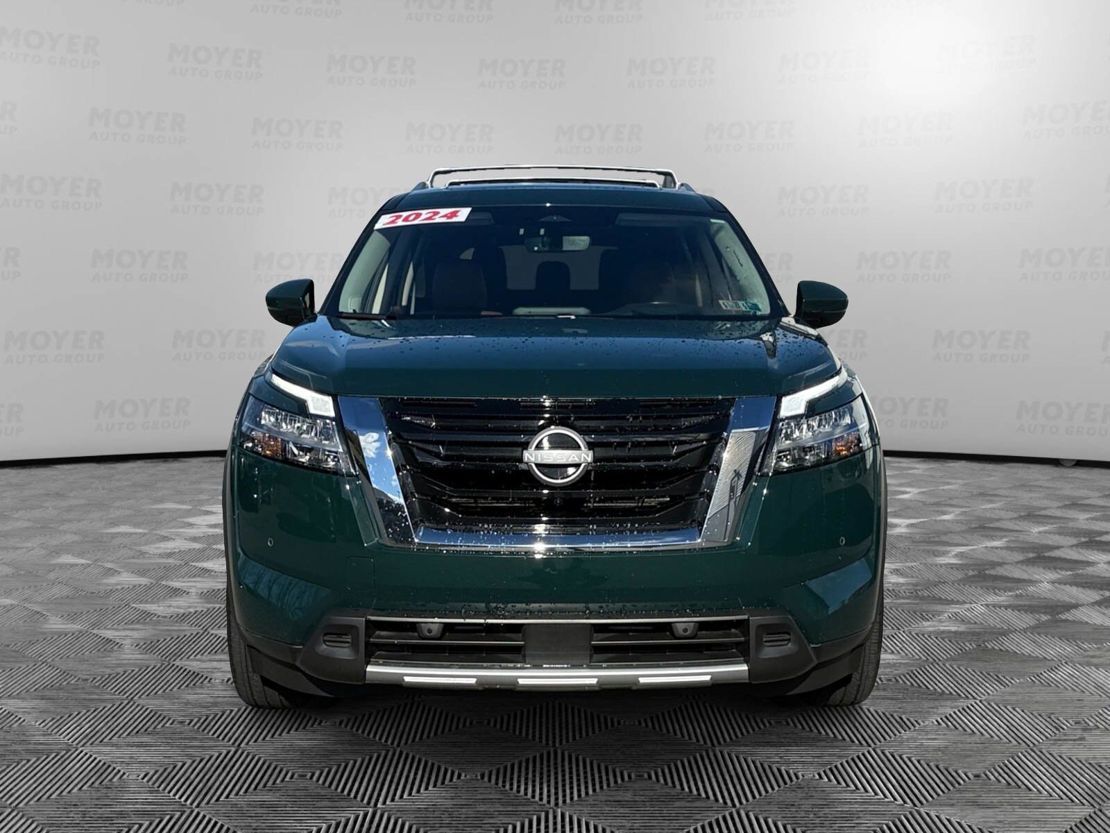 Certified Pre Owned 2024 Nissan Pathfinder Platinum located at Moyer Nissan of Wernersville. This Platinum 4WD/7 seats model features a V-6 engine and a full speed range automatic transmission. The Obsidian Green Pearl exterior is complemented by a Chestnut interior. Contact the dealer for most current information.