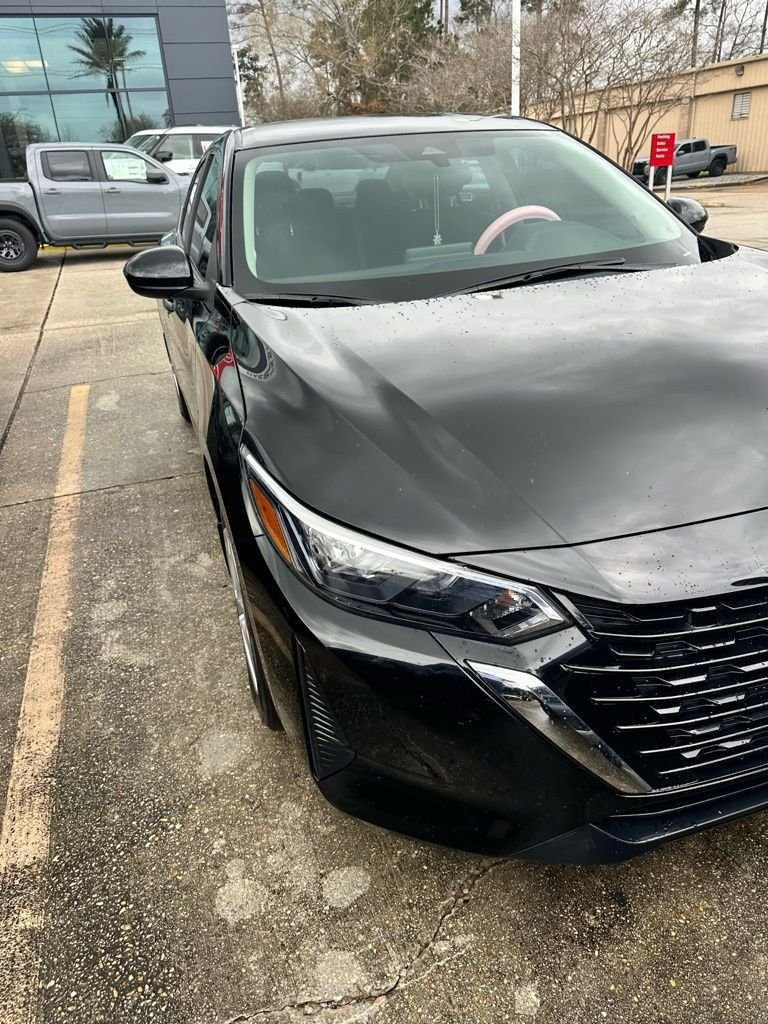 ABS brakes, Auto High-beam Headlights, Blind Spot Warning, Body Colored Splash Guards (4-Piece), Carpeted Floor Mats w/Trunk Mat, Clear Rear Bumper Protector, Delay-off headlights, Electronic Stability Control, Fully automatic headlights, Low tire pressure warning, Nissan USB Charging Cable Set, NissanConnect featuring Apple CarPlay and Android Auto, Radio: AM/FM w/RDS/MP3/Aux-In, Rear Parking Sensors, Rear window defroster, Remote keyless entry, Speed control, Telescoping steering wheel, Traction control. Recent Arrival! Odometer is 5187 miles below market average! Certified. Super Black 2024 Nissan Sentra S FWD CVT with Xtronic 2.0L I4 DOHC 30/40 City/Highway MPG.