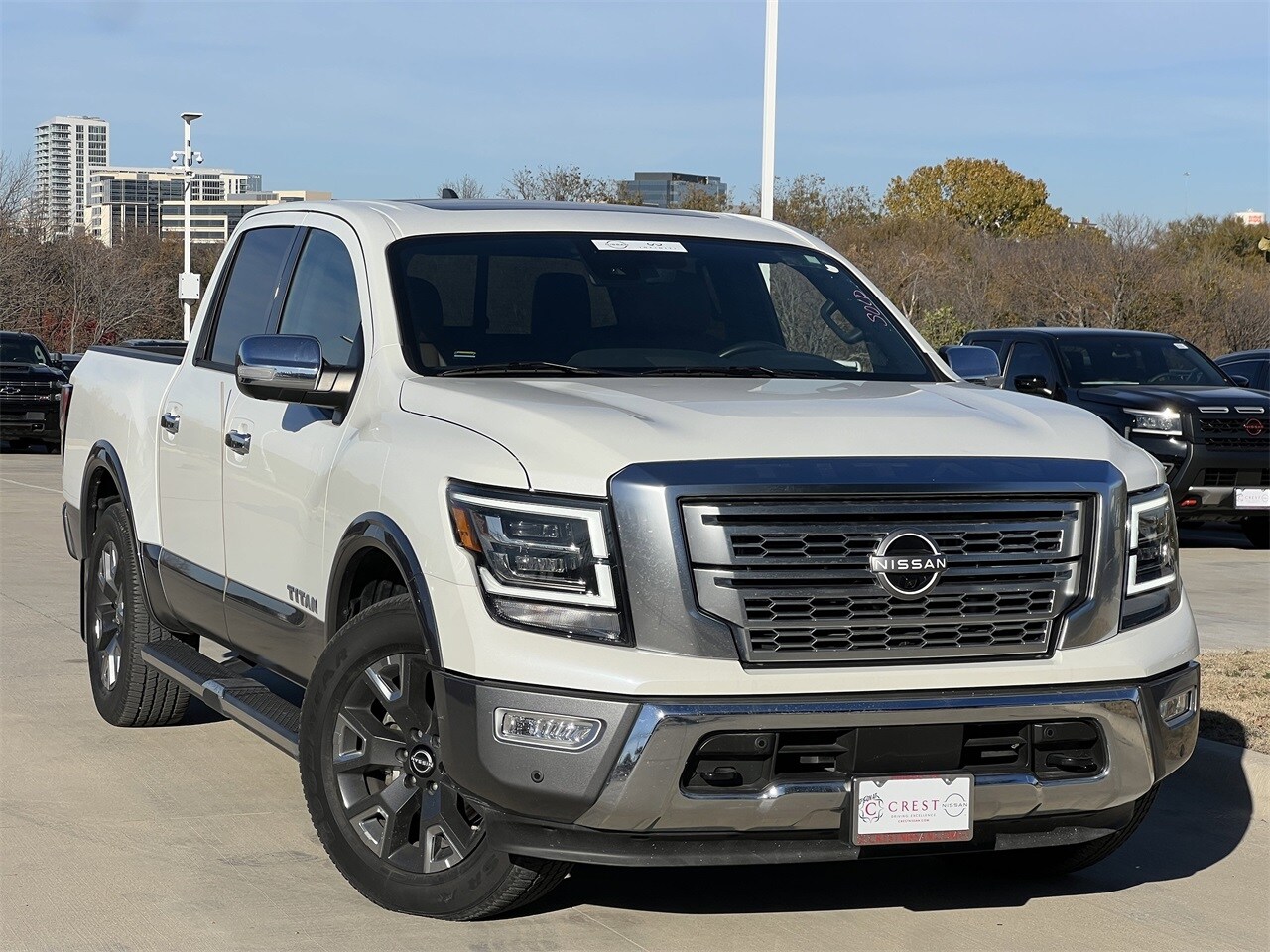 Recent Arrival! Carfax One-Owner. 2024 Nissan Titan Platinum Reserve Nav, Pano Roof, Leather, Fender Audio, Rem Start Navigation/GPS, Sunroof/Moonroof, Leather, 1-Owner, Must See, Very Rare!, Nissan Certified, 360 Camera, Just Traded In, 20 INCH WHEELS, Alloy Wheels, Heated Seats, Bedliner, Tow Package, 4x4, STEP RAILS, Ventilated Seats, Remote Start, 4D Crew Cab, 5.6L V8 DOHC 32V LEV3-ULEV70 400hp, Alloy wheels, Apple CarPlay/Android Auto, Blind Spot Warning, Dual Panel Panoramic Moonroof w/Tilt & Slide, Electronic Locking Tailgate, Heated front seats, Heated rear seats, Memory seat, Moonroof Package, Navigation System, Navigation system: NissanConnect with Navigation and Services, NissanConnect Services Powered By SiriusXM, Platinum Reserve Utility Package, Platinum Utility Package, Power driver seat, Power passenger seat, Premium Leather-Appointed Seat Trim, Radio: NissanConnect w/Navigation, Rear Utility Bed Step, TITAN Box, Ventilated front seats, Wheels: 20" x 8" Dark Painted & Machined Clad. 4D Crew Cab. Odometer is 29468 miles below market average! Certified. Nissan Certified Details: 7 Year/100,000 Mile Limited Warranty, 24/7 Hour Roadside Assistance, Carfax Vehicle History Report, Plus 1 Year Pre-Paid Parts. Gas Powered Nissan Models Only.