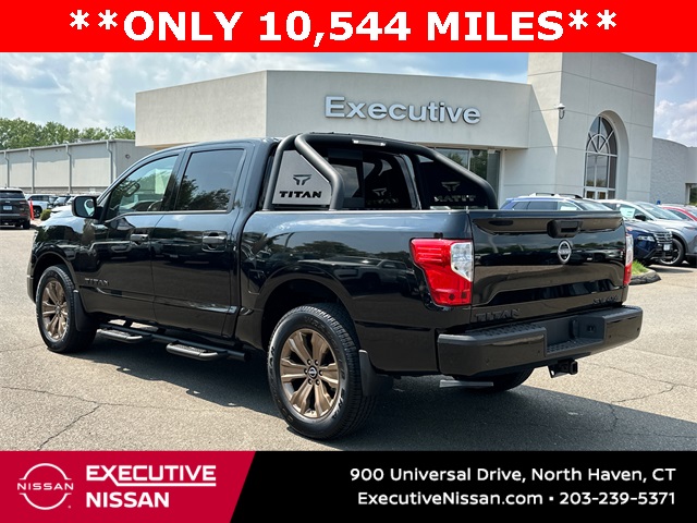 Certified. 2024 Nissan Titan Super Black SV 4X4 4D Crew Cab 9-Speed Automatic 4WD 5.6L V8 DOHC 32V LEV3-ULEV70 400hp. Nissan Certified, Carfax 1 Owner, Super Low Miles! Priced below KBB Fair Purchase Price!
