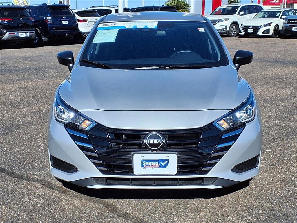 This 2024 Nissan Versa 1.6 S in Brilliant Silver Metallic comes with the following features: 1.6L I4 DOHC 16V CVT FWD Trunk Package (Shopping Bag Hooks and Trunk Net), Sames Certified Certified, 15" Steel Wheels w/Full Wheel Covers, 4 Speakers, ABS brakes, Air Conditioning, AM/FM radio, Auto High-beam Headlights, Brake assist, Bumpers: body-color, Carpeted Floor Mats, Cloth Seat Trim, Driver door bin, Driver vanity mirror, Dual front impact airbags, Dual front side impact airbags, Electronic Stability Control, Front anti-roll bar, Front Bucket Seats, Front reading lights, Front wheel independent suspension, Fully automatic headlights, Illuminated entry, Knee airbag, Low tire pressure warning, Occupant sensing airbag, Outside temperature display, Overhead airbag, Panic alarm, Passenger door bin, Passenger vanity mirror, Power door mirrors, Power steering, Power windows, Radio data system, Radio: AM/FM Audio System, Rear Parking Sensors, Rear side impact airbag, Rear window defroster, Speed control, Splash Guards, Steering wheel mounted audio controls, Tachometer, Telescoping steering wheel for wheel control and tilt. See dealer for details. Sames Auto Group stores have been in business for over 115 years.