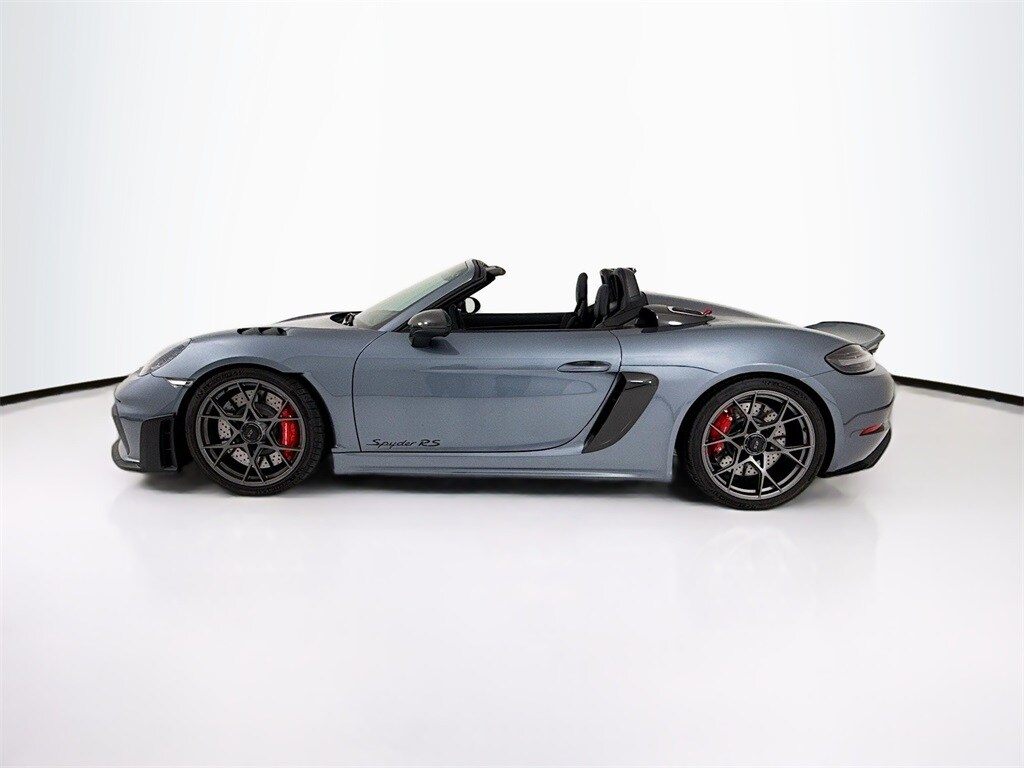 Porsche Approved Certified Pre-Owned! 2024 Porsche 718 Spyder RS in Vanadium Grey Metallic with Leather/Race-Tex Interior in Black with Arctic Grey Stitching. Under Porsche Approved Certified Pre-Owned Warranty for 2 Years and Unlimited Miles from Expiration of Porsche New Vehicle Warranty. New Vehicle Warranty Start Date is 8/14/2024. Options Featured: Weissach Package, Spyder RS Top with Accents in Deviated Color, Front Axle Lift, Voice Control, BOSE Surround Sound, LED Headlights incl PDLS, Auto-Dimming Mirrors with Integrated Rain Sensor, and Light Design Package. Available at Porsche Grapevine 1280 Texan Trail Grapevine TX 76051.