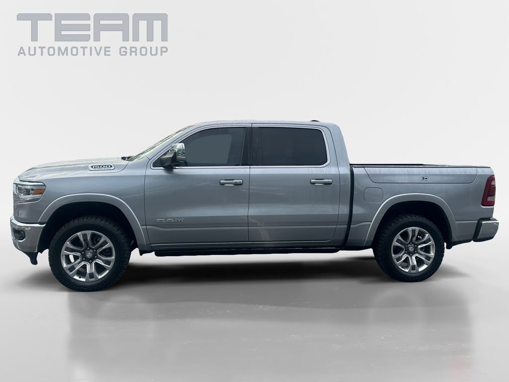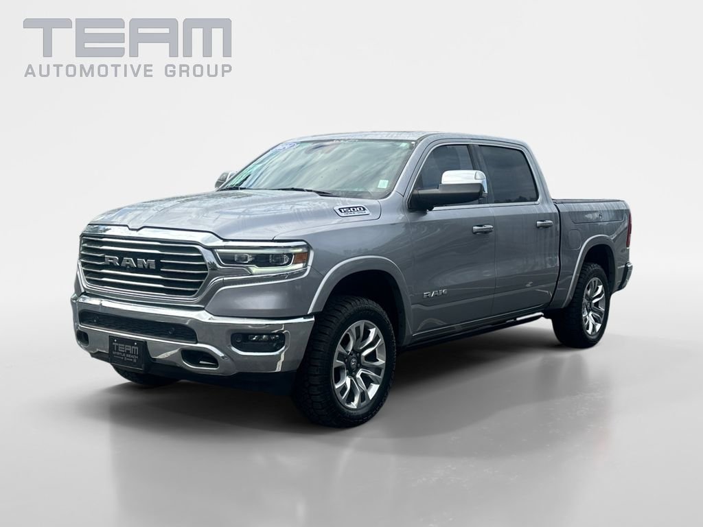 Billet Silver Metallic Clearcoat 2024 Ram 1500 Laramie Longhorn. Check out all these great options Longhorn Level 1 Equipment Group (Adaptive Cruise Control w/Stop & Go, Blind Spot & Cross Path Detection, Digital Rearview Mirror, harman/kardon 19 Speaker Premium Sound, Heads-Up Display, Lane Keep Assist, LED CHMSL Lamp, MOPAR Spray In Bedliner, Parallel & Perp Park Assist w/Stop, ParkSense Front/Rear Park Assist w/Stop, Pedestrian Emergency Braking, Pick-Up Box Lighting, Power Running Boards, Surround View Camera System, and Wireless Charging Pad), Quick Order Package 27K Longhorn, Trailer Tow Group (Trailer Brake Control, Trailer Light Check, Trailer Reverse Steering Control, and Trailer Tire Pressure Monitoring System), 10 Speakers, Driver Seat Memory, Exterior 115V AC Outlet, Exterior Mirrors w/Memory, Front dual zone A/C, Heated Front Seats, Heated Second Row Seats, ParkView Rear Back-Up Camera, Pedal memory, Power 4-Way Passenger Lumbar Adjust, Power 8-Way Driver & Passenger Seats, RamBox Cargo Management System, Remote keyless entry, Traction control, Ventilated Front Seats, Ventilated Rear Seats, Wheels: 20" x 9" Aluminum Painted/Polished, Wireless Charging Pad.