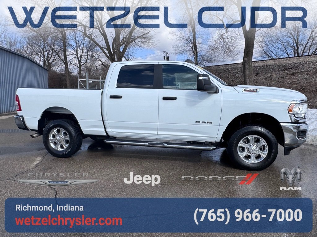 For a VIP appointment please contact Randy King at (765) 598-5086 or email rking@wetzelauto.com. Recent Arrival! RAM Certified!, Clean One Owner CARFAX!, 8.4" Touchscreen Display, Bumpers: chrome, Chrome Flat Cab-Length Side Steps, Front Fog Lamps, Fully automatic headlights, Heated door mirrors, Mirror Running Lights, Power Heated Fold Telescope Mirrors, Quick Order Package 2GZ Big Horn, Radio: Uconnect 5 W w/8.4" Display, SiriusXM Satellite Radio. CARFAX One-Owner. Clean CARFAX. Bright White Clearcoat 2024 Ram 2500 Big Horn 4D Crew Cab 4WD 8-Speed Automatic 6.4L V8.