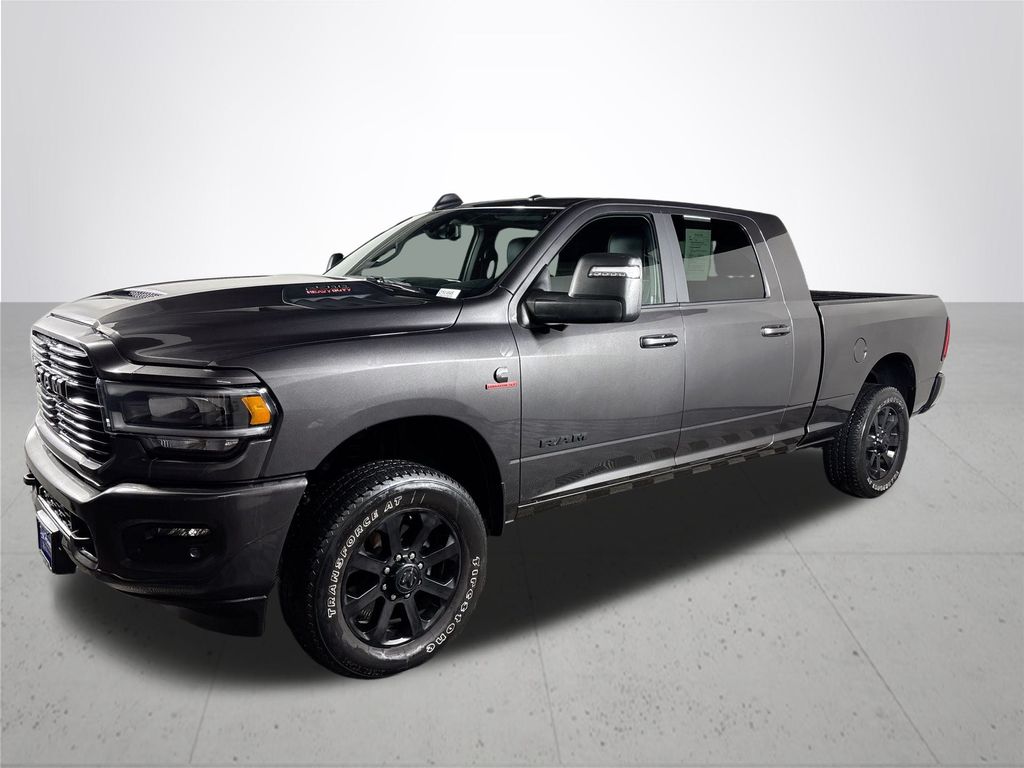 Performed maintenance: including oil & filter change, cabin & engine air filter, wiper blades, professional detail, and 100+ point safety & mechanical inspection. CARFAX One-Owner. 2500 Laramie, 4D Mega Cab, Cummins 6.7L I6 Turbodiesel, 6-Speed Automatic, 4WD, Granite Crystal Metallic Clearcoat, Black Leather, 12" Touchscreen Display, 2 Way Rear Headrest Seat, 4 Way Front Headrests, 4G LTE Wi-Fi Hot Spot, Alexa Built-In, Apple CarPlay, Auto Adjust In Reverse Exterior Mirrors, Auto Dim Exterior Mirror, Auto High Beam Headlamp Control, Auto Power-Folding Mirrors, Auto-Dimming Exterior Passenger Mirror, Black Exterior Truck Badging, Black Headlamp Bezels, Black Interior Accents, Black RAM Head Tailgate Badge, Black Tail Lamp Bezels, Black Wheel Center Hub, Blind Spot & Cross Path Detection, Body Color Grille Surround, Center Hub, Center Stop Lamp w/Cargo View Camera, Chrome Exterior Mirrors, Connected Travel & Traffic Services, Connectivity - US/Canada, Disassociated Touchscreen Display, Exterior Mirrors Courtesy Lamps, Exterior Mirrors w/Heating Element, Exterior Mirrors w/Memory, Exterior Mirrors w/Supplemental Signals, Foam Bottle Insert (Door Trim Panel), For Details, Visit DriveUconnect.com, Forward & Reverse Utility Lights, Front LED Fog Lamps, Global Telematics Box Module (TBM), Gloss Black Grille Billets/Accents, Google Android Auto, GPS Antenna Input, GPS Navigation, HD Radio, Heated Front Seats, Integrated Voice Command w/Bluetooth, Laramie Level 1 Equipment Group, LED Reflector Headlamps, LED Tail Lamps, Mirror Power Heat Fold Memory Tele, Mirror Running Lights, Navigation System, Night Edition, Off-Road Information Pages, ParkSense Front/Rear Park Assist System, ParkView Rear Back-Up Camera, Power Adjust Mirrors, Power Adjustable Convex Aux Mirrors, Power Adjustable Pedals w/Memory, Power Telescoping Mirrors, Quick Order Package 2HH Laramie, Radio: Uconnect 5 Nav w/12.0" Display, Rain Sensitive Windshield Wipers, Rear Power Sliding Window.