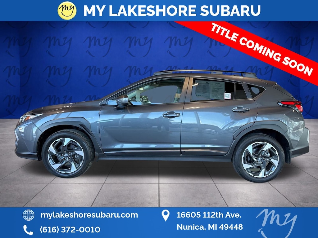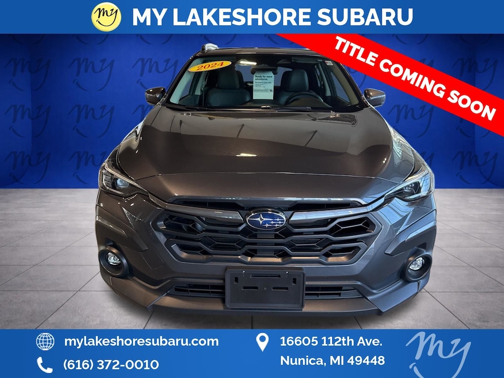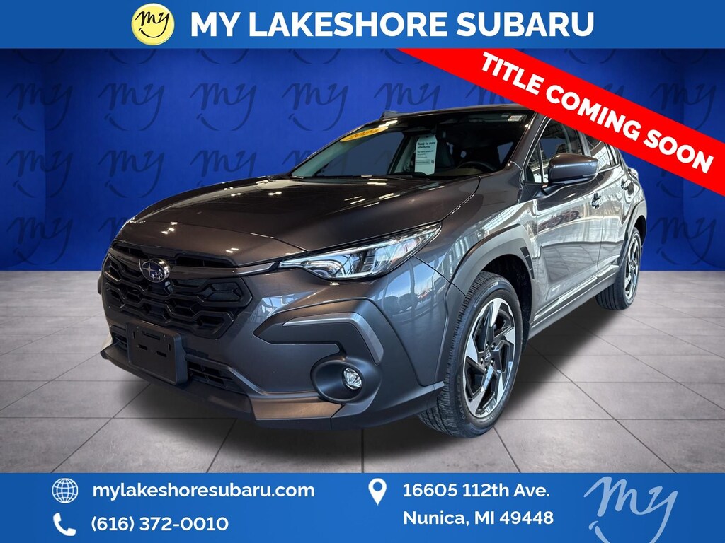 Crosstrek Limited, Magnetite Gray Metallic, all wheel drive, Apple CarPlay & Android Auto, backup camera, blind spot monitoring, EyeSight Driver Assist, lane departure warning, leather heated power seats, oil changes for life. Certified. Magnetite Gray Metallic 2024 Subaru Crosstrek Limited AWD Lineartronic CVT 2.5L 4-Cylinder DOHC 16V. My Lakeshore Subaru is your #1 choice in Michigan to get the best price on used vehicles and best value for your trade. The My Lakeshore Subaru team is ready to provide you with a world-class experience, ensuring that you find the perfect vehicle that fits all your needs. Every vehicle has been through a full safety inspection completed by certified technicians and fully detailed. We sell many makes and models, Certified Pre-owned Subarus and Pre-owned Vehicles with years from 2025-2024-2023-2022-2021-2020-2019-2018-2017-2016-2015-2014-2013-2012-2011-2010-2009-2008-2007 and all makes Audi, BMW, Chevrolet, Toyota, Volkswagen, Kia, Hyundai, Mazda, Mercedes, Dodge, Chrysler, Jeep, Ram, Lincoln, Honda, Subaru, and many models like Crosstrek, Outback, Forester, Accent, Legacy, WRX, BRZ, Solterra, and more. Take advantage of our VIP experience by calling 231-867-6957 to schedule a test drive. Read our customer reviews and view our entire selection of preowned vehicles at www.mylakeshoresubaru.com, or stop by today, located at 16605 112th Ave, Nunica, MI 49448. 26/33 City/Highway MPG. My Lakeshore Subaru is proud to service customers saving you time and money on any Pre-owned vehicle! See dealer for complete details.