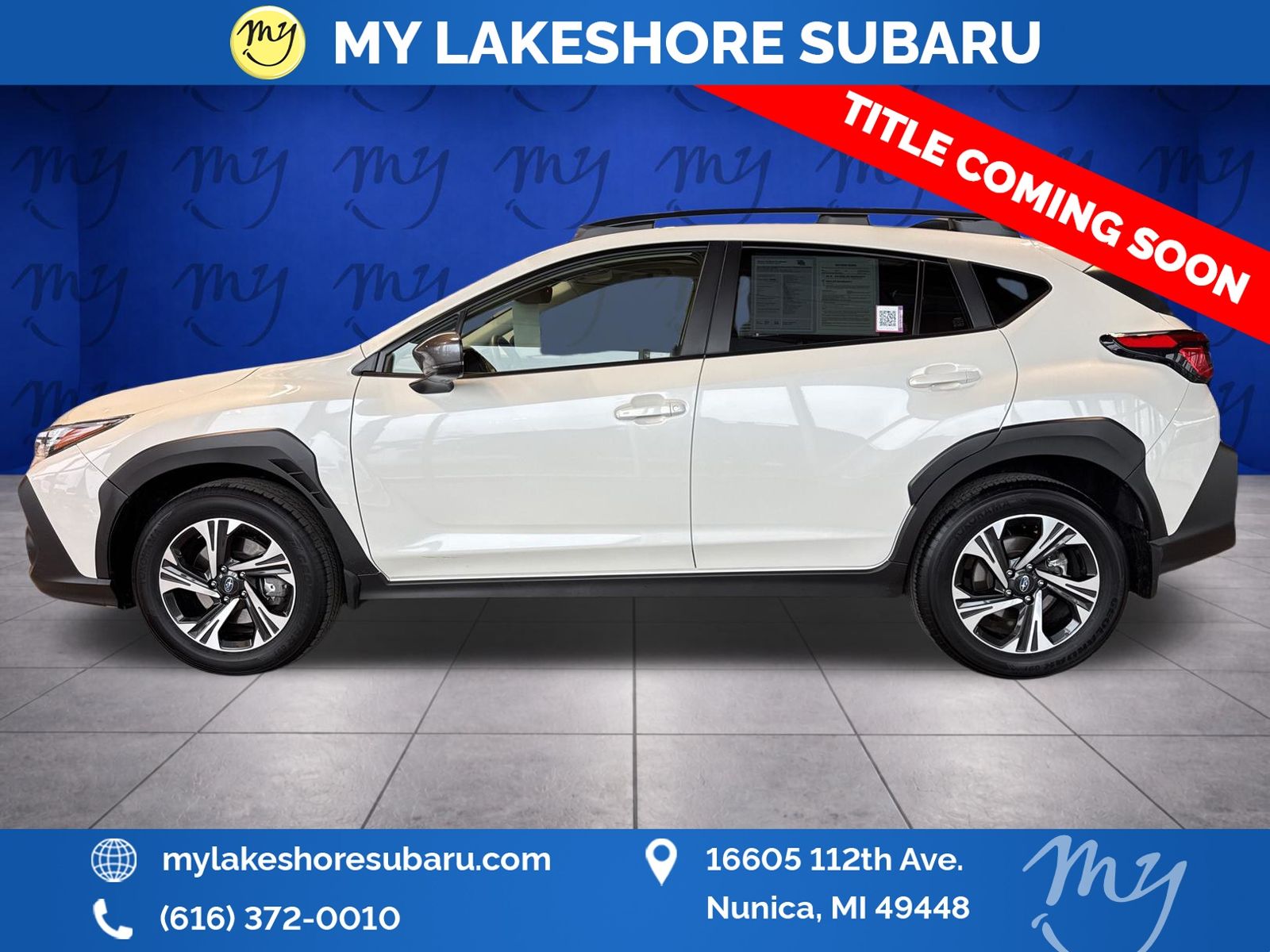 Crosstrek Premium, Crystal White Pearl, All wheel drive, Apple CarPlay & Android Auto, Backup camera, Blind Spot Monitoring, EyeSight Driver Assist, Heated seats, Lane departure warning, Local trade, Moonroof, Oil changes for life, 10-Way Power Driver's Seat, All-Weather Package, Blind Spot Detection w/Rear Cross-Traffic Alert, BSD/RCTA & Moonrf & All Weather Pkg & Power Driver Seat, Heated Exterior Mirrors, Heated Front Seats, Heated Wipers, Power Moonroof. Certified. Crystal White Pearl 2024 Subaru Crosstrek Premium AWD Lineartronic CVT 2.0L 4-Cylinder DOHC 16V. My Lakeshore Subaru is your #1 choice in Michigan to get the best price on used vehicles and best value for your trade. The My Lakeshore Subaru team is ready to provide you with a world-class experience, ensuring that you find the perfect vehicle that fits all your needs. Every vehicle has been through a full safety inspection completed by certified technicians and has been detailed.