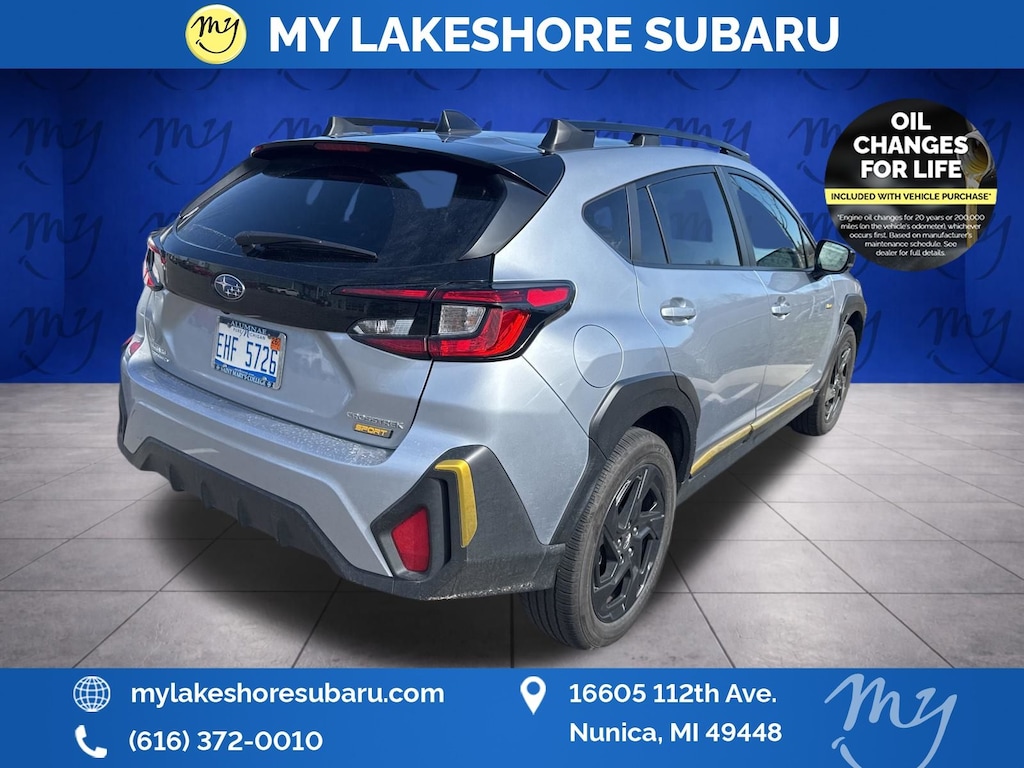 Crosstrek Sport, Ice Silver Metallic, All wheel drive, Apple CarPlay & Android Auto, Backup camera, Blind Spot Monitoring, EyeSight Driver Assist, Heated seats, Lane departure warning, Local trade, Moonroof, Oil changes for life, 10-Way Power Driver's Seat, Auto-Dimming Exterior Mirror with Approach Light, Auto-Dimming Mirror with Compass & HomeLink, Blind Spot Detection with Rear Cross-Traffic Alert, BSD/RCTA & Power Driver Seat & Power Moonroof, Crosstrek Mirror Package, Power Moonroof. Certified. Ice Silver Metallic 2024 Subaru Crosstrek Sport AWD Lineartronic CVT 2.5L 4-Cylinder DOHC 16V. My Lakeshore Subaru is your #1 choice in Michigan to get the best price on used vehicles and best value for your trade. The My Lakeshore Subaru team is ready to provide you with a world-class experience, ensuring that you find the perfect vehicle that fits all your needs. Every vehicle has been through a full safety inspection completed by certified technicians and fully detailed. Recent Arrival! 26/33 City/Highway MPG.