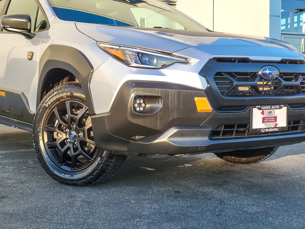 Certified. 2024 Subaru Crosstrek Wilderness Ice Silver Metallic 2.5L 4-Cylinder DOHC 16V AWD. CARFAX One-Owner. Clean CARFAX. Come see this 2024 Subaru Crosstrek Wilderness! It's the one you've been searching for! This Crosstrek comes equipped with these options. Subaru Certified Pre-Owned Details: Transferable Warranty, 152 Point Inspection, Warranty Deductible: $0, Vehicle History, Powertrain Limited Warranty: 84 Month/100,000 Mile (whichever comes first) from original in-service date, SiriusXM 3-Month trial subscription, $500 Owner Loyalty coupon & 1 year trial subscription to STARLINK, Roadside Assistance. Whether you're looking for a new or used Subaru or Mazda, Hawk Subaru and Hawk Mazda are premier dealerships that specialize in these vehicles to ensure every individual gets the car they've always wanted. As a Subaru and Mazda dealership, we offer a vast selection of new and used models so you can get yourself in a Subaru or Mazda at a price you can afford. Our experienced sales staff works closely with you to determine which model will provide the features and benefits you're looking for. We are the leading provider of Subaru and Mazda vehicles near Bolingbrook, Plainfield, and Lockport.