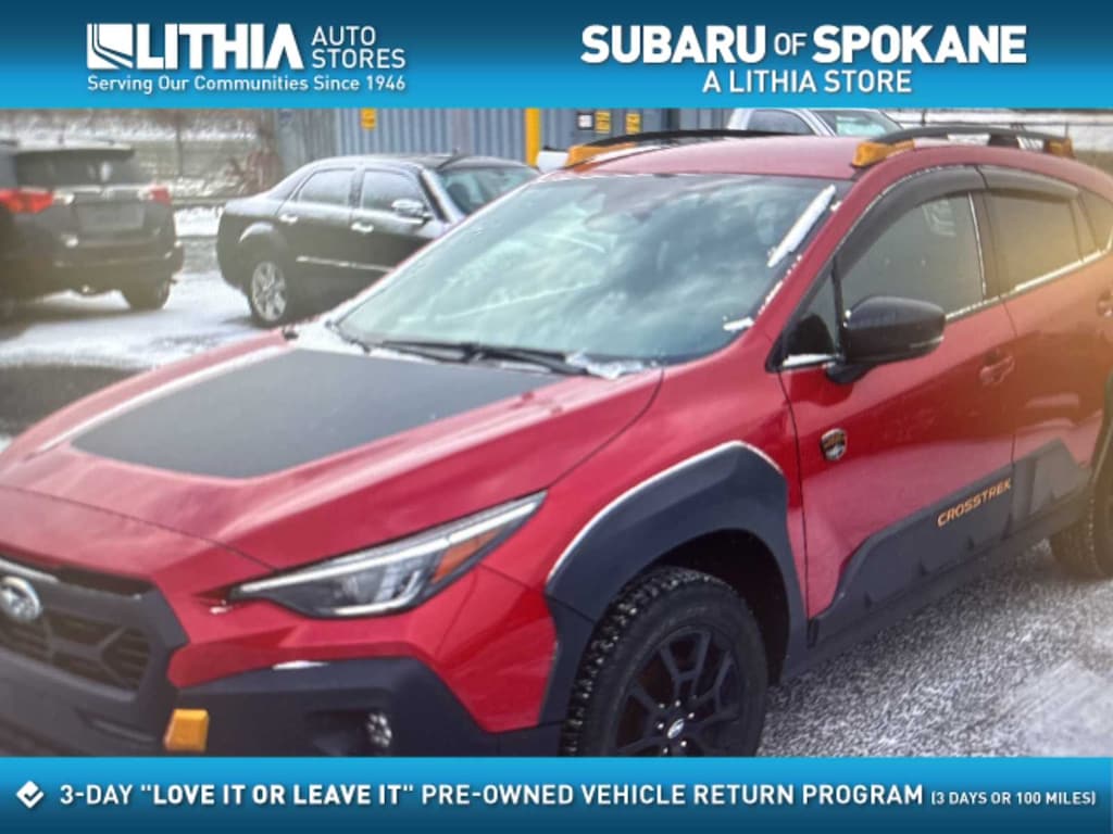 Certified, Carfax One-Owner, Clean Carfax 2024 Subaru Crosstrek Wilderness AWD in Red Pearl. This rugged Wilderness model is engineered for offroad capability and allweather performance, making it ideal for yearround driving in Spokane, Spokane Valley, Cheney, Airway Heights, and North Idaho. With upgraded ground clearance, advanced AWD tuning, Wilderness-specific exterior protection, and heated features throughout, it handles snow, dirt, and steep terrain across the Inland Northwest with confidence. Powered by a 2.5L DOHC engine paired with a Lineartronic CVT, the Crosstrek Wilderness delivers strong performance while achieving 25/29 MPG City/Highway. The 4.11 axle ratio, four-wheel independent suspension, traction control, and Electronic Stability Control provide secure handling on winter roads, backroads, and mountain routes. Wilderness-specific 17-inch matte black alloy wheels and enhanced body cladding add capability and durability. The interior features wilderness-grade StarTex upholstery, heated front bucket seats, leather shift knob, automatic climate control, dual-zone A/C, illuminated entry, front center armrest, rear seat center armrest, overhead console, and a spacious cargo area with Rear Seatback Protector and Cargo Net. Door scuff protectors, side sill plates, lithium red door edge guards, and LED lighting upgrades add both function and durability. Technology includes the STARLINK 11.6-inch Multimedia Plus System, Apple CarPlay and Android Auto, SiriusXM capability, radio data system, AM/FM radio, 6-speaker audio, steering-wheel mounted controls, trip computer, and auto-dimming mirror with compass and HomeLink. Safety and driver-assist features include Subarus EyeSight System with Adaptive Cruise Control, Pre-Collision Braking, Lane Departure Warning, and Lane Keep Assist. Additional systems include a rearview camera, STARLINK Safety and Security capability, dual front and side airbags, knee airbag, occupant sensing airbags, fully automatic headlights, auto high-beam headlights, fog lights, heated mirrors, turn signal mirrors, low tire pressure monitoring, and security system. Practical exterior features include body-color bumpers, spoiler, roof rails, rear wiper, Rear Seatback Protector, Rear Bumper Cover, and Wilderness-specific protective elements designed for rugged use. As a Subaru Certified Pre-Owned model, this Crosstrek includes a 152-point inspection, transferable warranty, zero deductible, roadside assistance, vehicle history report, 84month/100,000mile powertrain coverage from the original inservice date, SiriusXM 3month trial, $500 Owner Loyalty coupon, and a 1year STARLINK subscription. This 2024 Subaru Crosstrek Wilderness AWD offers capability, durability, and winter-ready performance, making it an exceptional choice for outdoor adventures and everyday driving throughout the Spokane region.