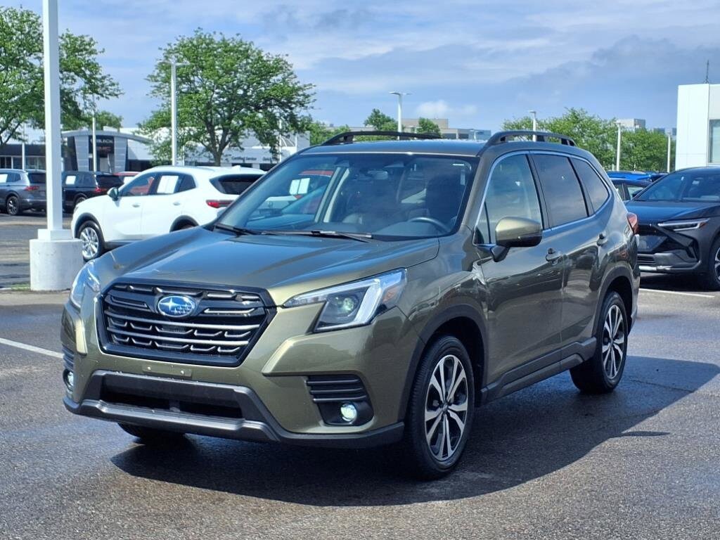 Autumn Green Metallic 2024 Subaru Forester Limited AWD Lineartronic CVT 2.5L 4-Cylinder DOHC 16V Sunroof, Moonroof, Leather, Certified, 1-Owner Clean Carfax, All Wheel Drive, AWD, Heated Seats, Low Miles, Serviced Here, Auto High-beam Headlights, Emergency communication system: STARLINK Safety and Security (Subscription Required), Exterior Parking Camera Rear, Fully automatic headlights, harman/kardon 9-Speaker Audio System, Heated front seats, Heated Steering Wheel, Nav & harman/kardon & RAB & Heated Steering Wheel, Navigation System, Power Liftgate, Power moonroof: Panoramic, Radio: Subaru STARLINK 8.0 Multimedia Nav System, Reverse Automatic Braking System (RAB), STARLINK/Apple CarPlay/Android Auto, Wheels: 18 x 7.0 J Black Machine Finish Alloy. All vehicles are subject to prior sale. Price does not include applicable tax, title, license, and a $387.00 documentation fee or other fees required by law, lending institutions, and/or lessors. Vehicles shown at different locations are not currently in our inventory (not in stock) but can be made available at our location within a reasonable time after your request. The payment information provided here is not a commitment by any organization to provide credit, leases or other programs. Odometer is 1798 miles below market average! 26/33 City/Highway MPG.